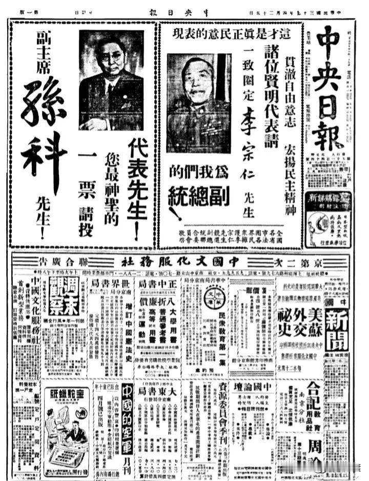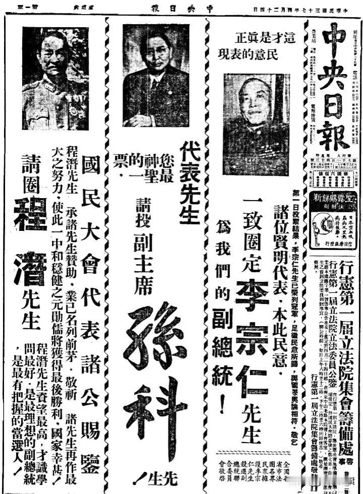 没有更好的办法,也许竞选是一个不错的办法!1948年“行宪国民大会”竞选副总统广