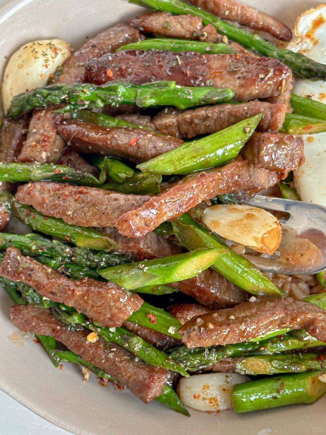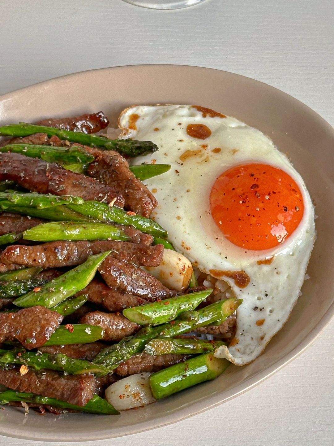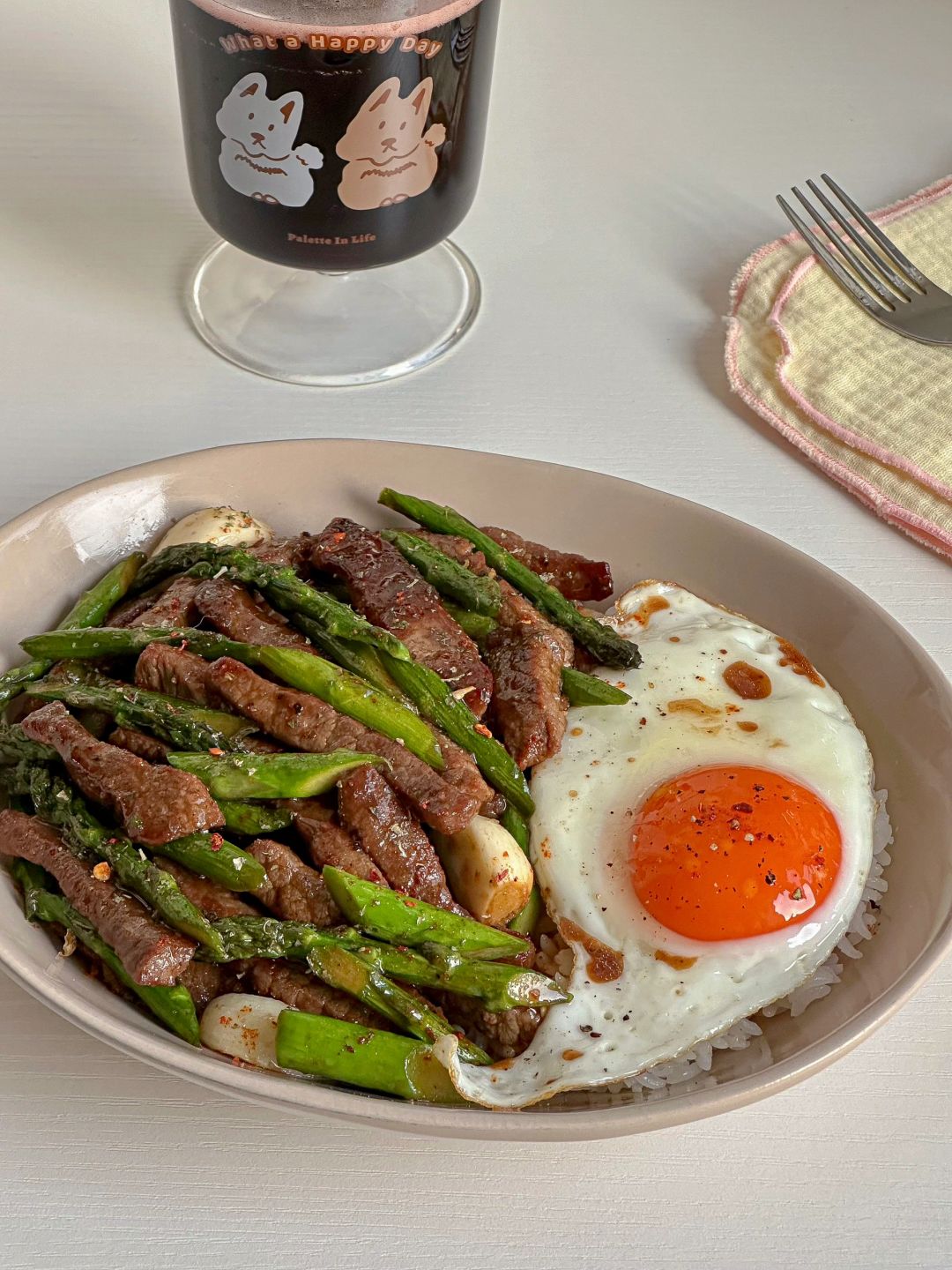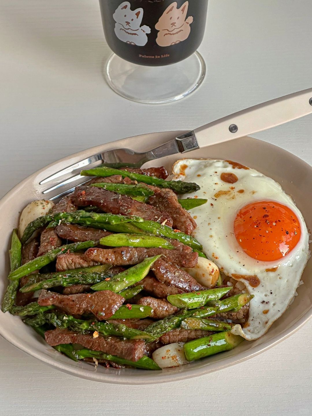 阿宓 1 2024-10-26 13:53 [doge]补充点细节,芦笋把根的皮削掉,然后焯水的时候加点盐和油一分钟左右。牛肉的部位推荐眼肉,没有筋,把血水用厨房纸吸干,我个人很讨厌料酒味,牛肉腌制的时候加点有糖分的调味料帮助煎的时候有美拉德反应,比如家中常备的生抽。牛肉用的淀粉红薯粉会比玉米淀粉好一点,但是淀粉可加可不加。我不会拍的好看,但是绝对好吃!