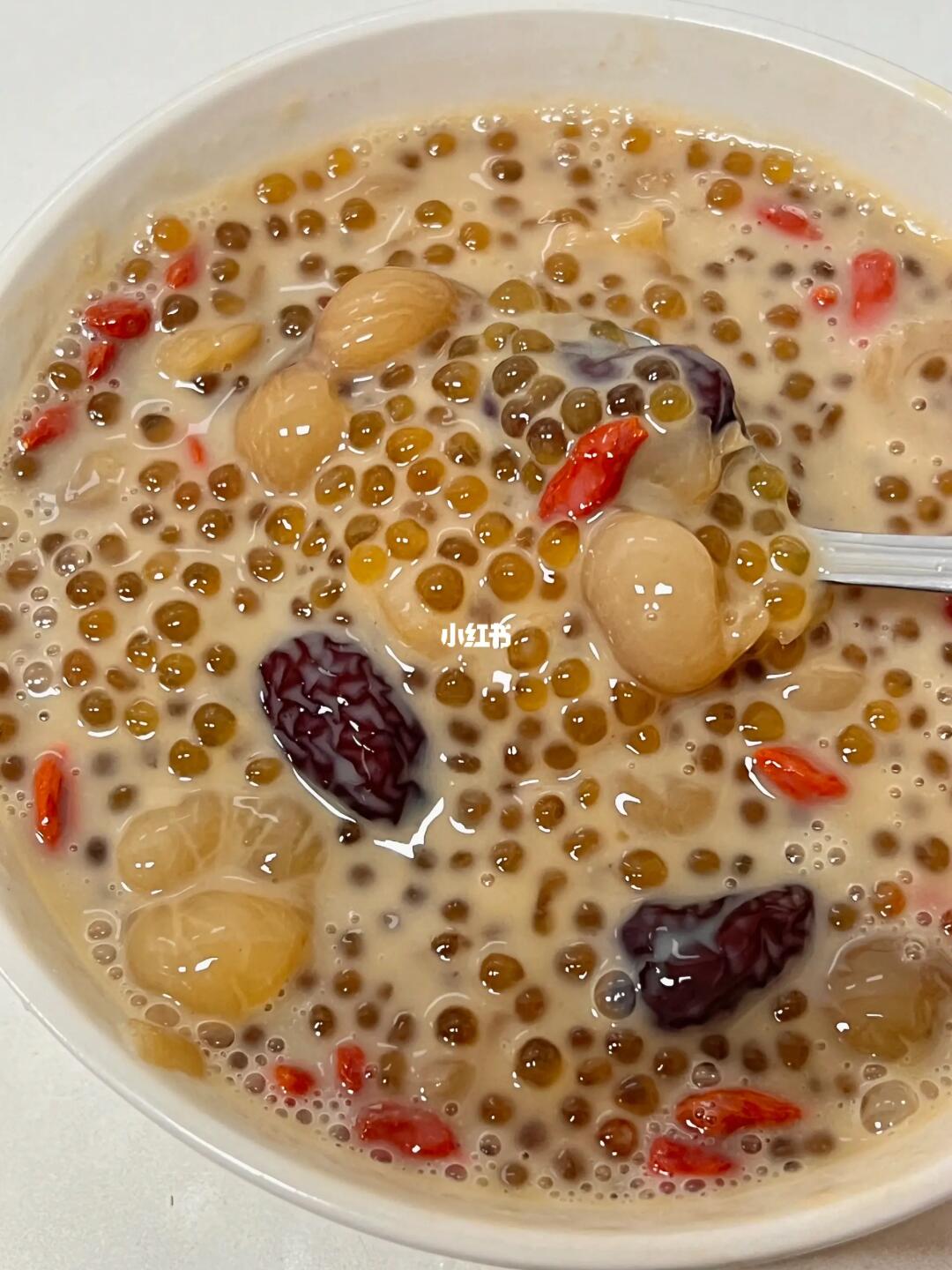 自制红糖桂圆红枣西米露!!