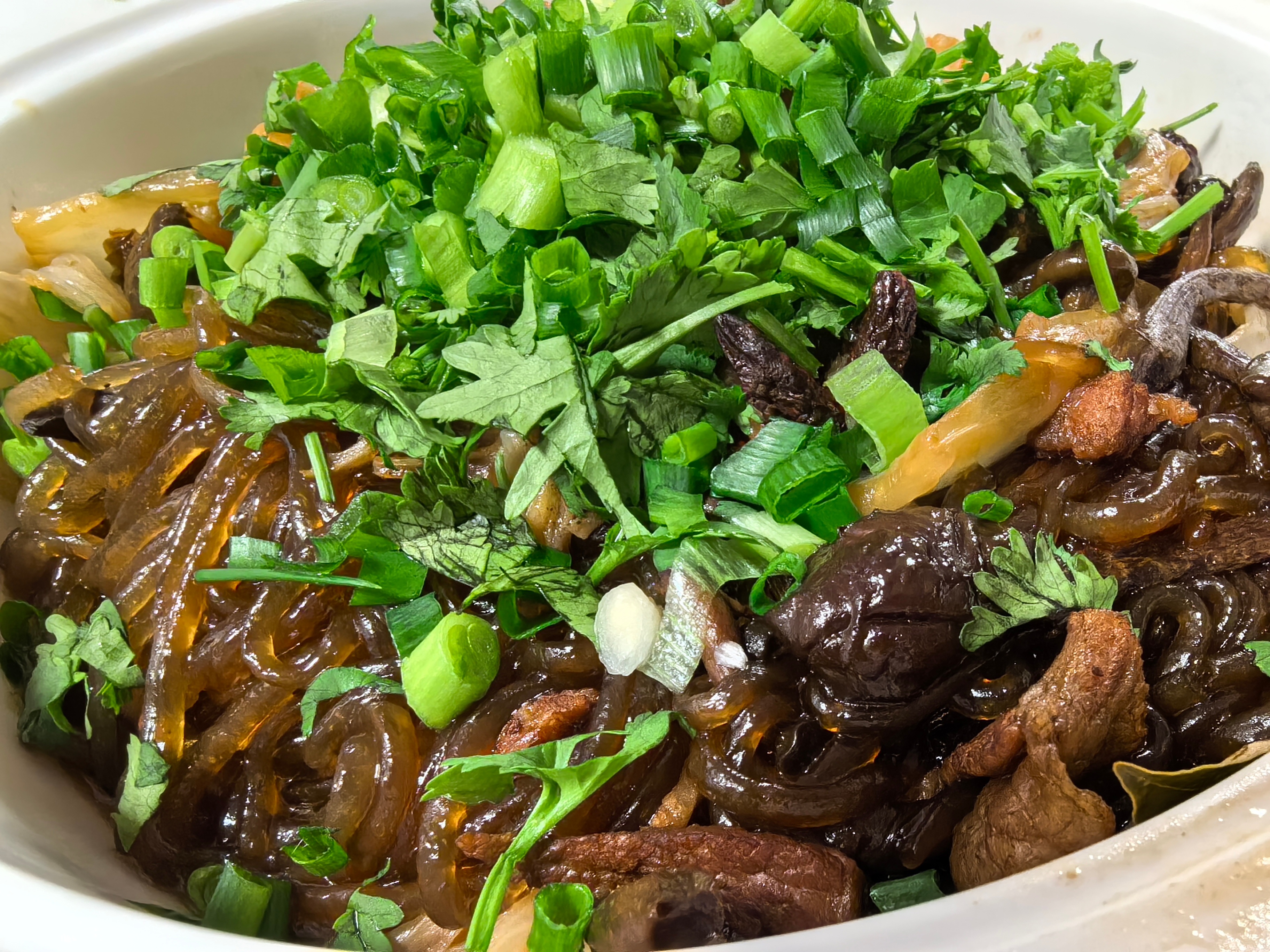 这三个菜简单虽简单,做起来也极快,不费功夫,也谈不上多少技术,但又体现了中餐搭配的哲学,有肉、有菜,有荤,有素,有山珍,有海鲜,相互配合,互为补充,也富有营养。