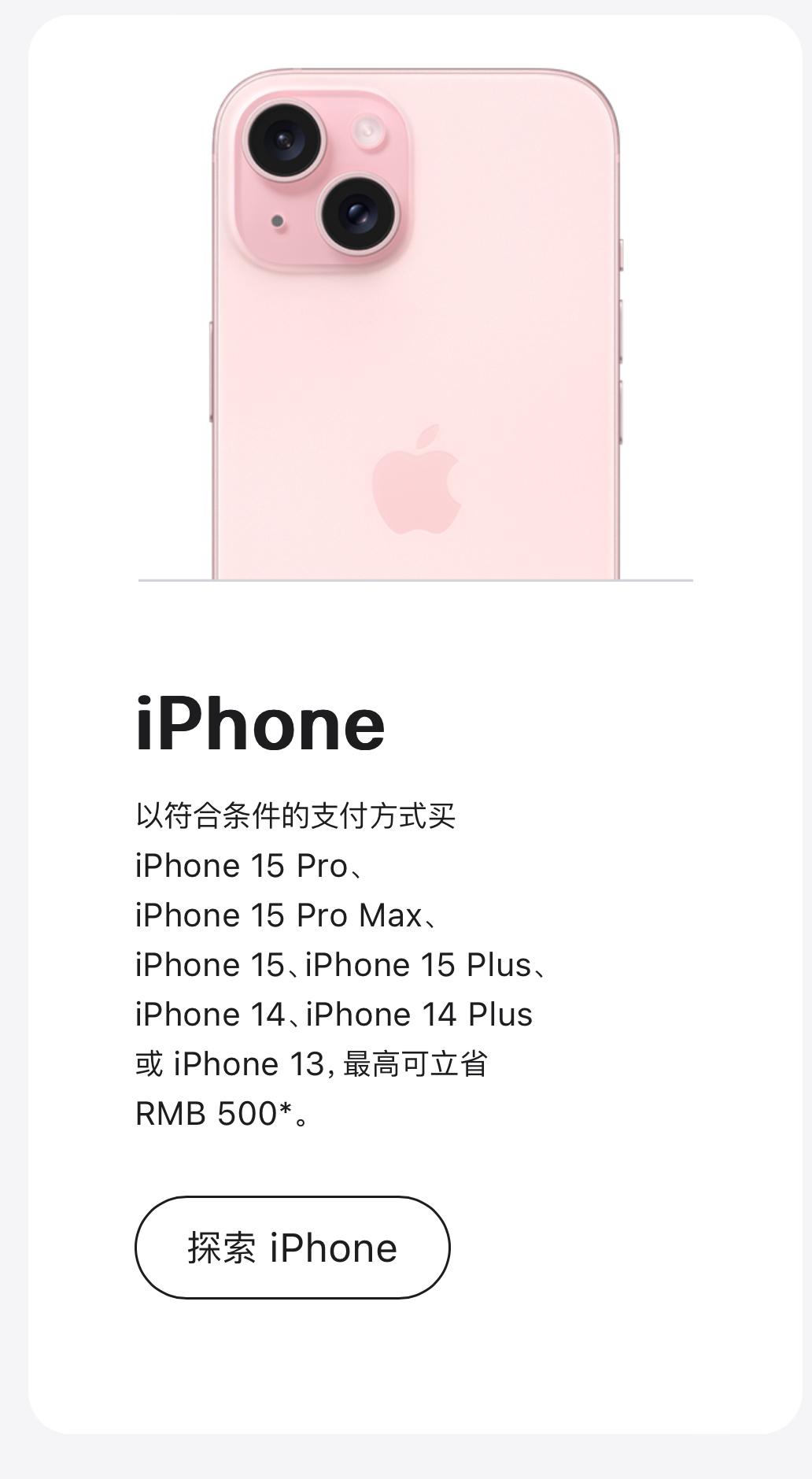 苹果春节限时优惠来了。 iPhone iPad. Mac Watch 都有不同程度的优惠[流泪] 包含了 iPhone 15 系列。