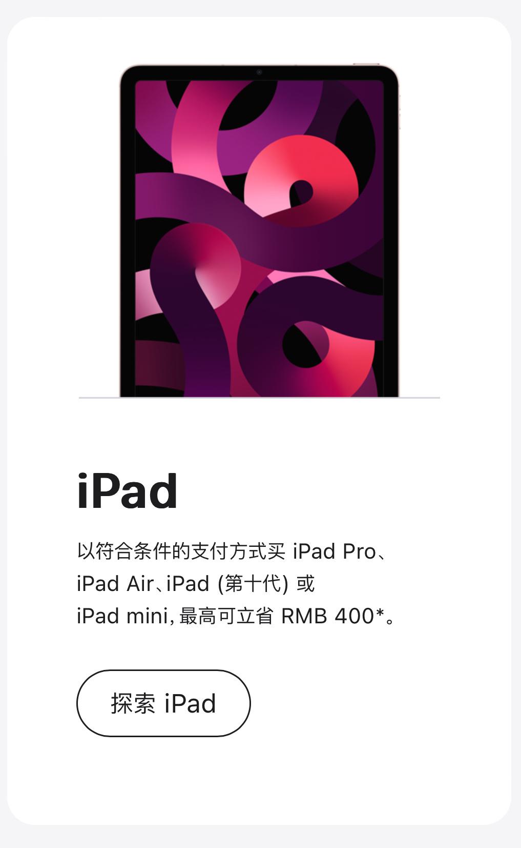 苹果春节限时优惠来了。 iPhone iPad. Mac Watch 都有不同