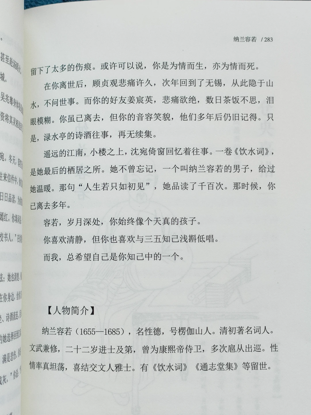 容若,岁月深处,你始终像个天真的孩子。你喜欢清静,但你也喜欢与三五知己浅斟低唱。而我,总希望自己是你知己中的一个。