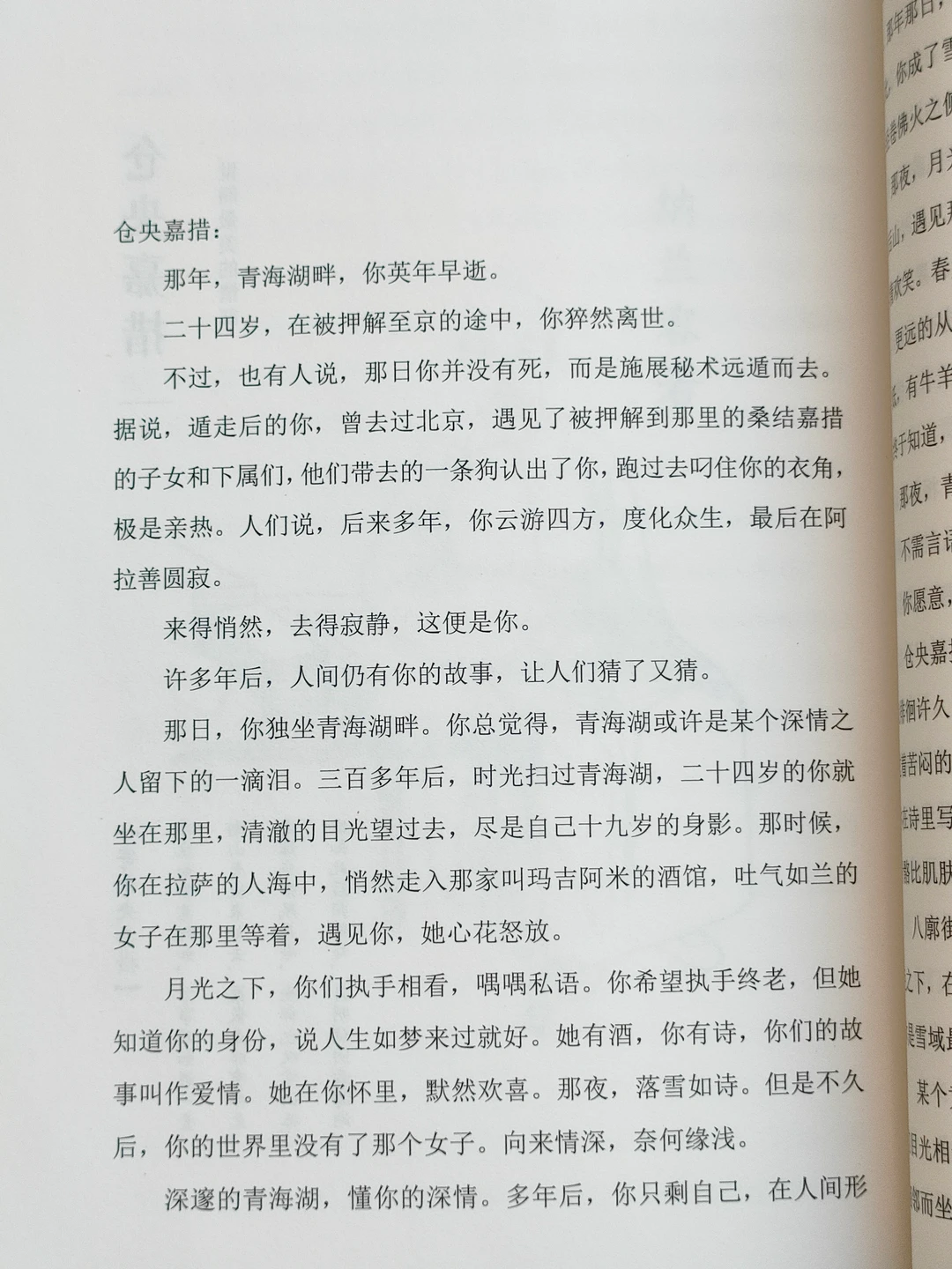 一本《当仓央嘉措遇见纳兰容若》,让我惊讶,继而自卑,觉得自己像个大老粗。世间的文字竟然还能这样美,他的才应是来自天上吧。
