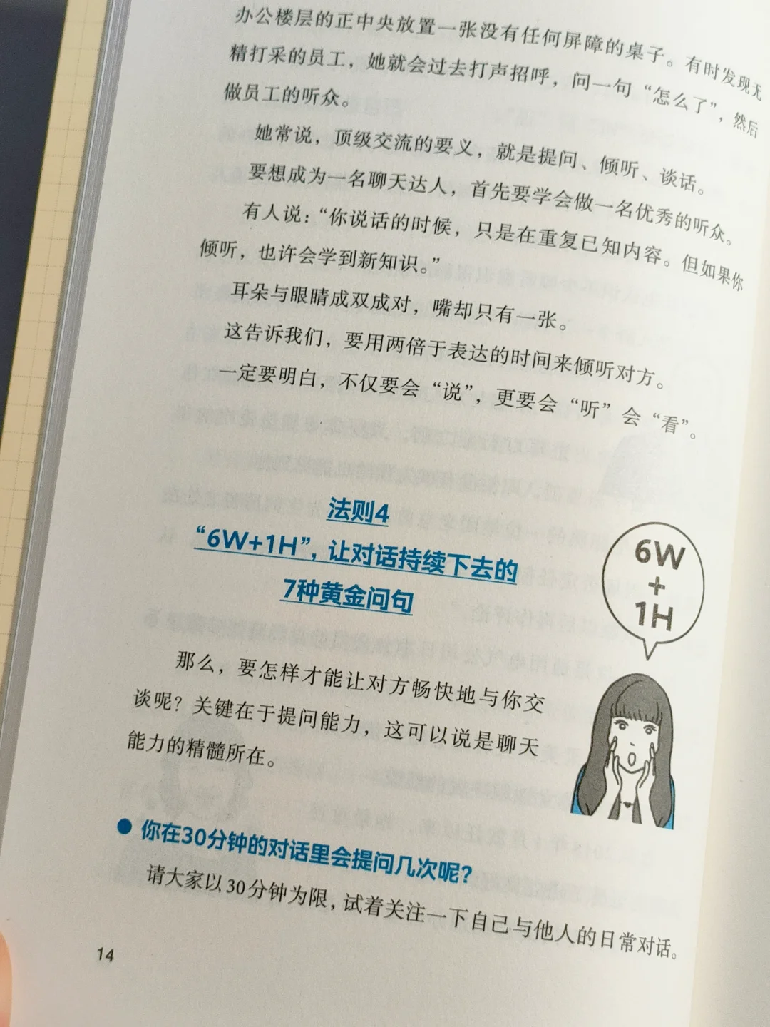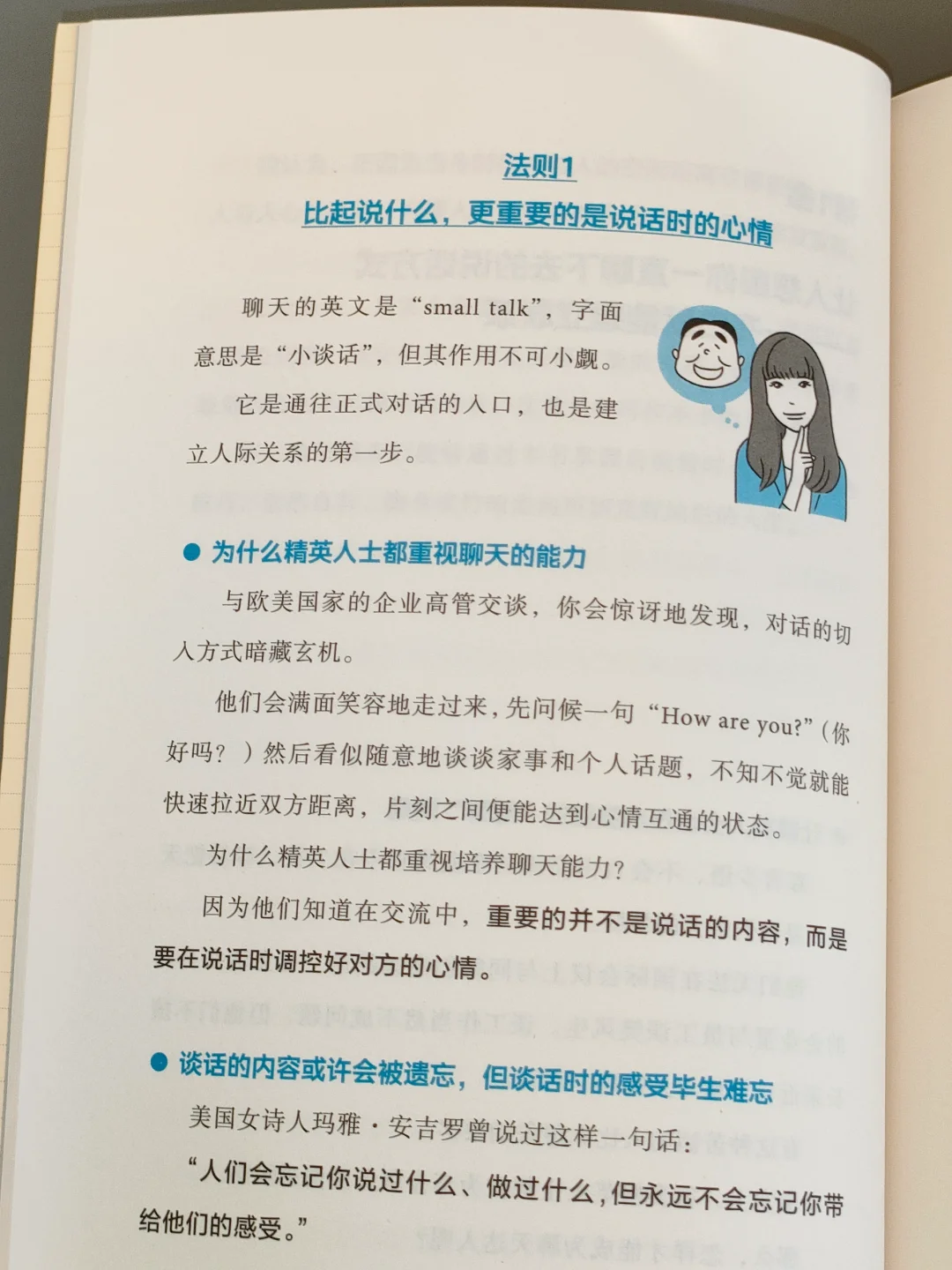 我强烈推荐这本书!因为它与日常见到的教说话的书不一样,不讲高深的沟通技巧,就是贴合实际,模版的对话,直接套用就可以,一看就懂,让你一开口就赢得对方的好感。