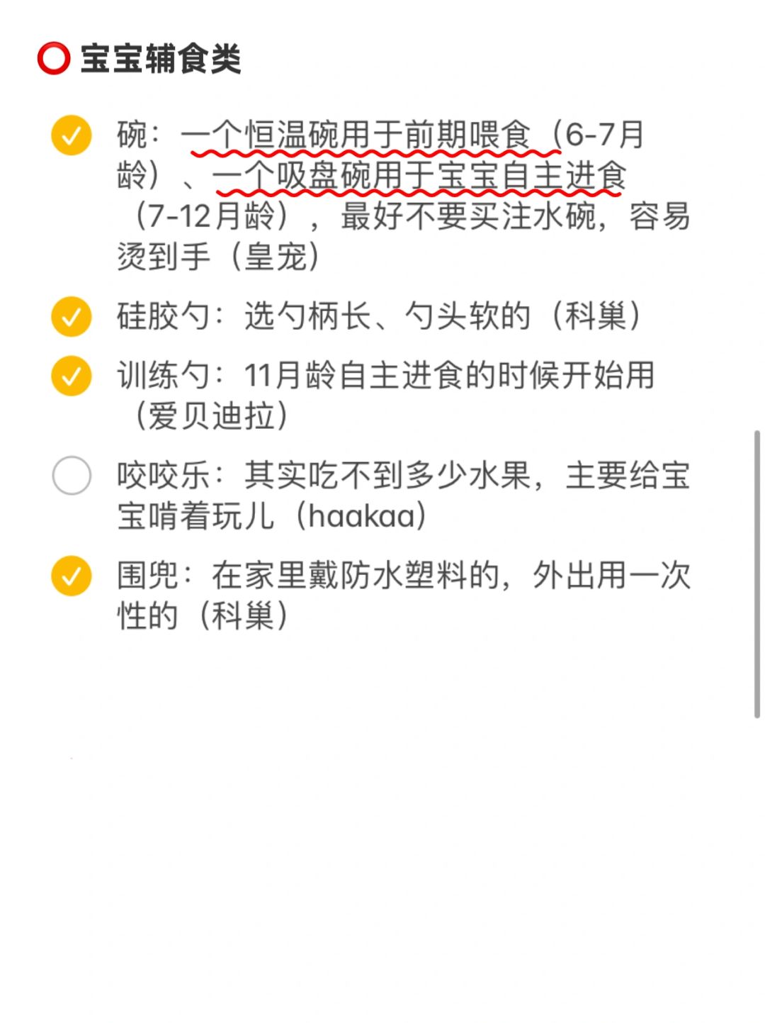 2024年+7首场母婴节直播来了! 开播时间:1月21日周六16:00 这次我整理了从宝宝待产到6月龄要用到的东西,黄色打勾的代表刚需,一定要入‼️其他的看个人需求随意 一、宝宝喂养类 二、宝宝护理类 三、宝宝衣物类 四、宝宝大件类 五、宝宝辅食 六、宝宝早教类 七、妈妈🏥待产包(精简版) 预产期1-4月的麻麻可以🐛了!4月后的可以等618哈哈哈 其他还有啥没写到的大家评论区补充!