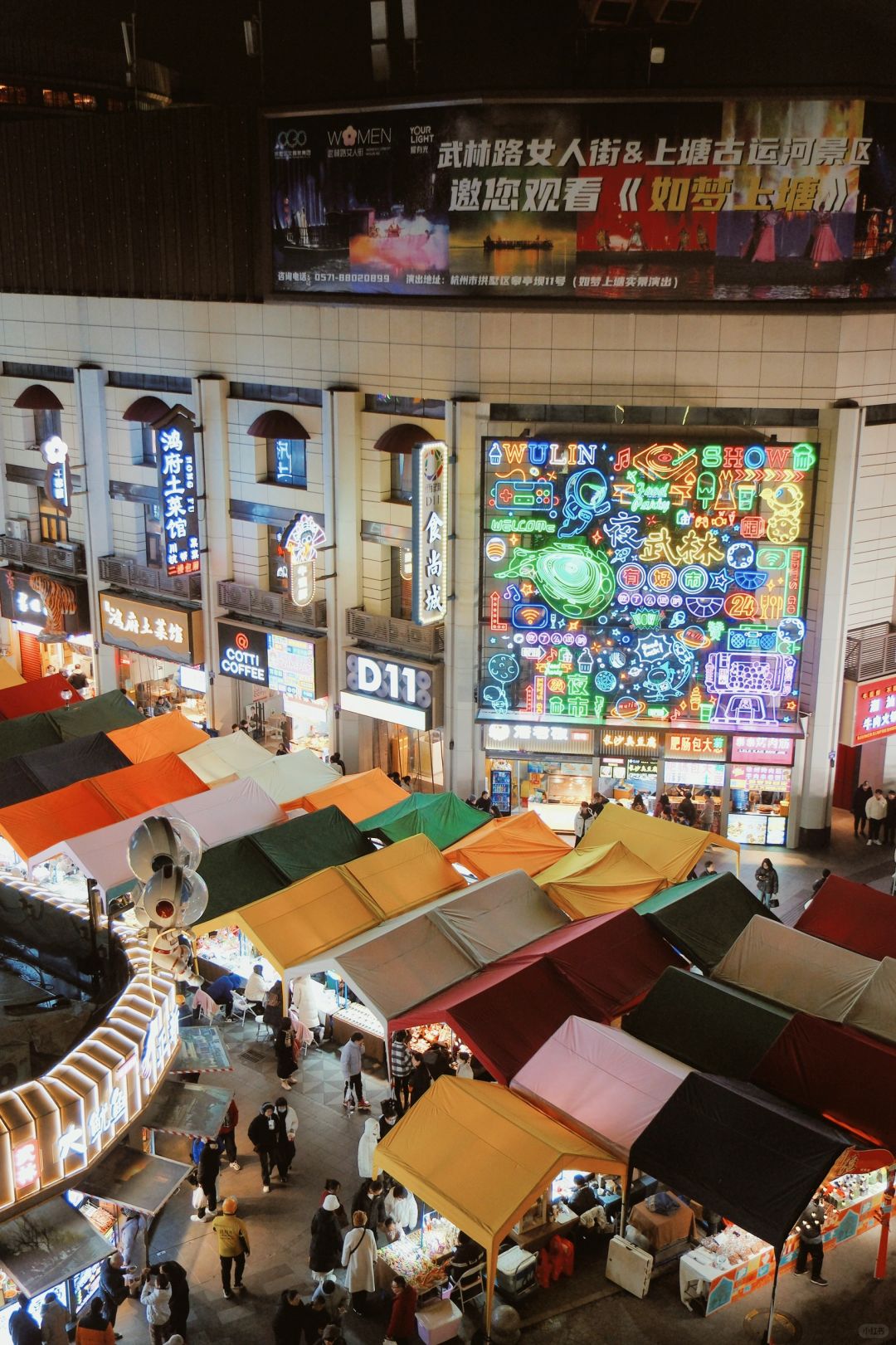烟火气满满,横竖两条步行街,可逛性很强,到这离西湖和断桥也就很近啦。