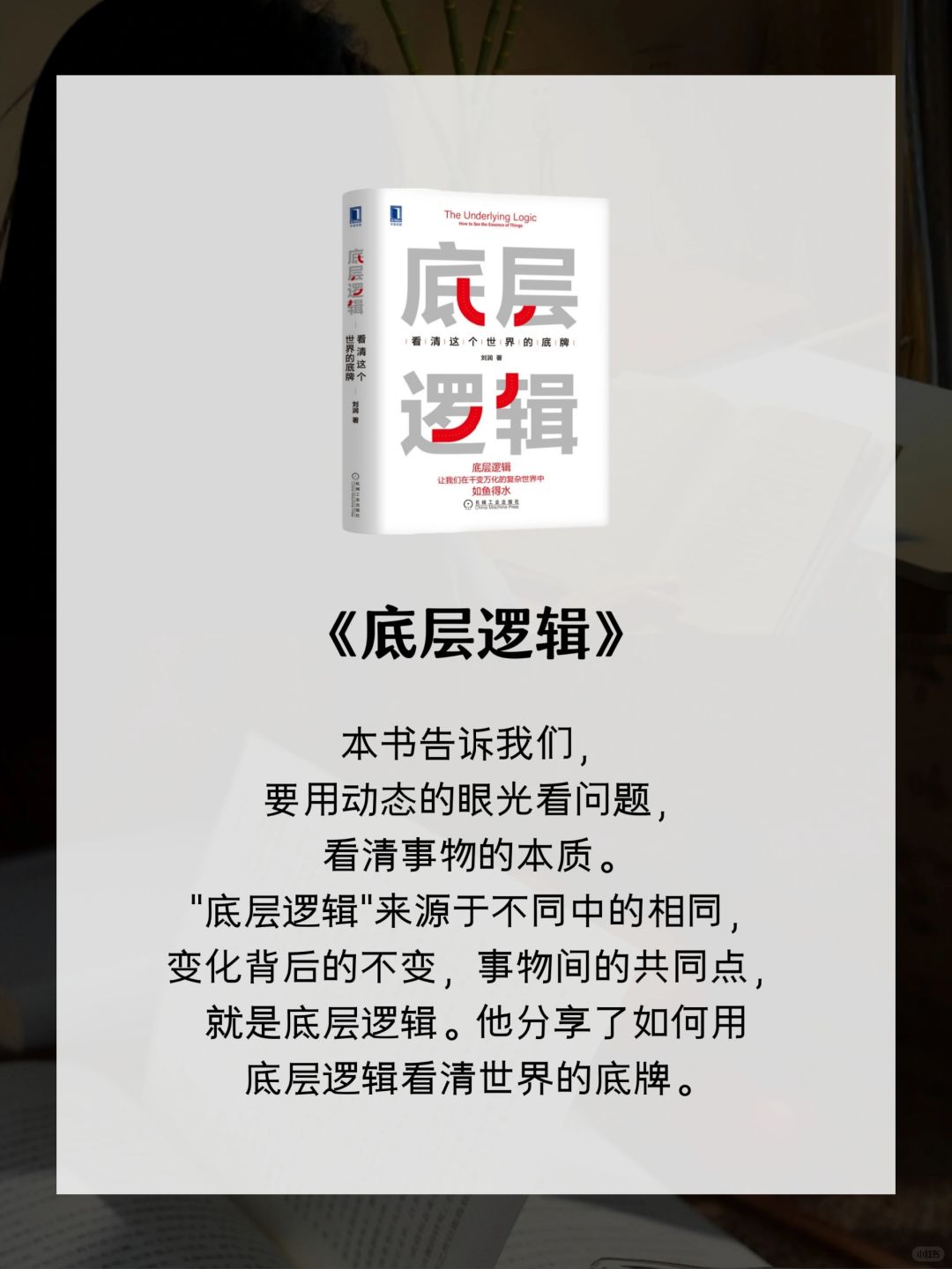 本书告诉我们,要用动态的眼光看问题,看清事物的本质。"底层逻辑"来源于不同中的相同,变化背后的不变,事物间的共同点,就是底层逻辑。他分享了如何用底层逻辑看清世界的底牌。