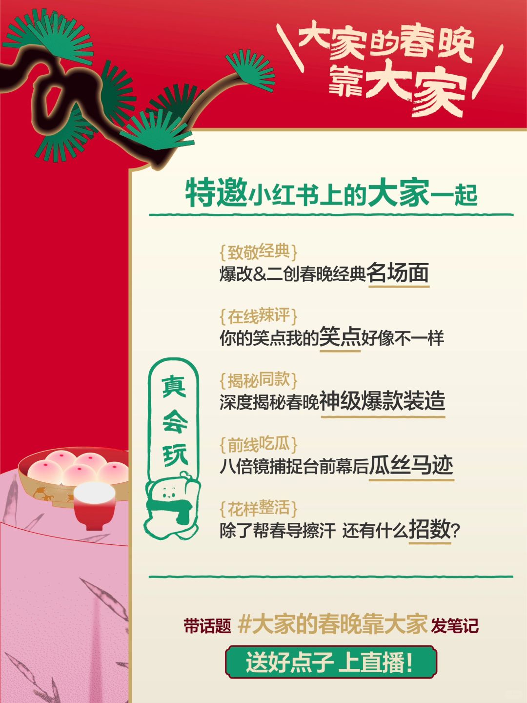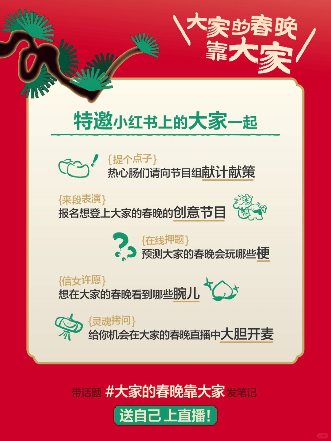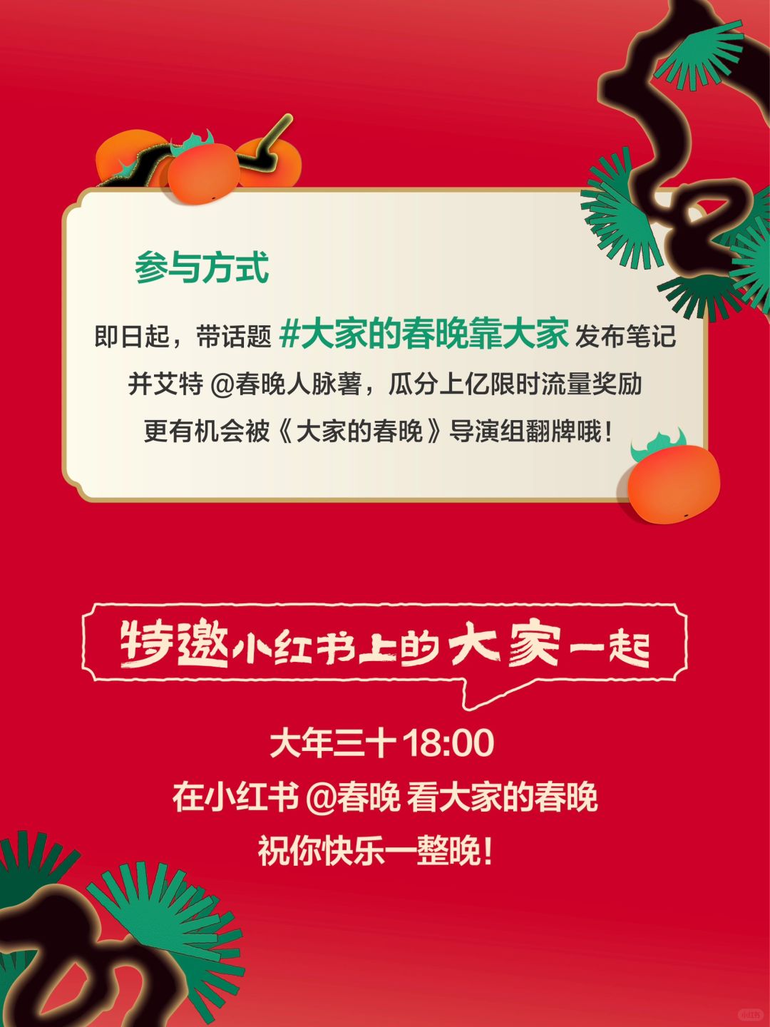 2⃣️在笔记正文@春晚人脉薯 展示你家宠物的才艺,瓜分上亿流量! 还有可能被冲浪的春晚导演翻牌,甚至选送 哦
