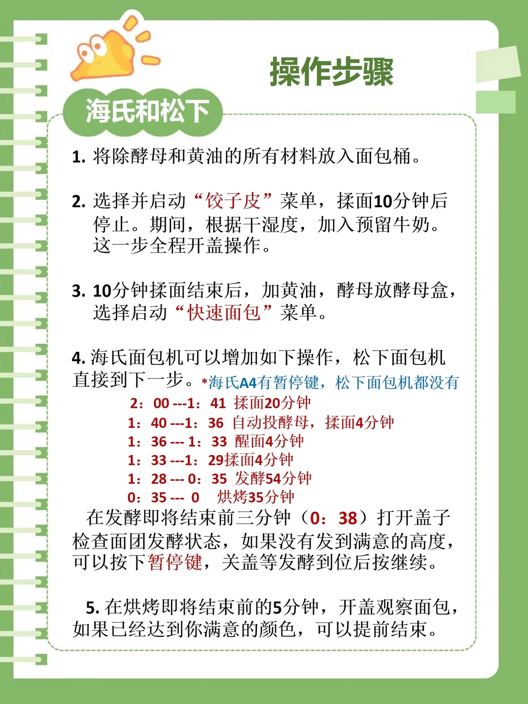 请注意一下细节,特别是海氏面包机在烘烤前可以按“暂停”让面包机继续发酵这一步,因为天冷了,面包机可能会温度不够,发酵不到位。独家秘笈哦!这也是我为啥在测评面包机的时候为啥这么关注“暂停键”的原因, 非常有用。