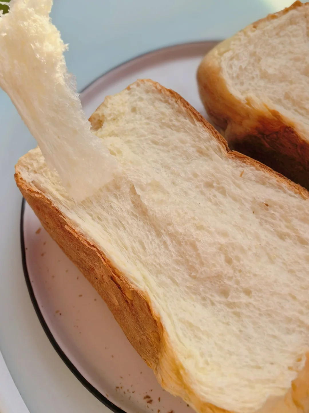 燕麦虽然是粗粮,但比全麦友好,对面筋的伤害程度不大,依然可以做出拉丝的面包,奶香加上麦香,浓浓的健康味道。