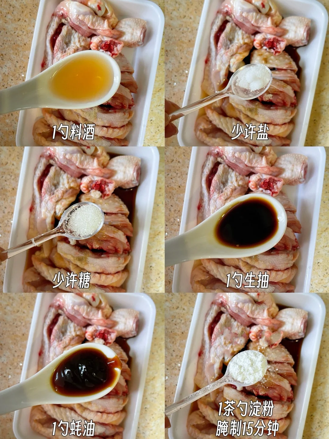 2️⃣鸡肉参考图片腌制15分钟,把鸡肉两面煎黄备用