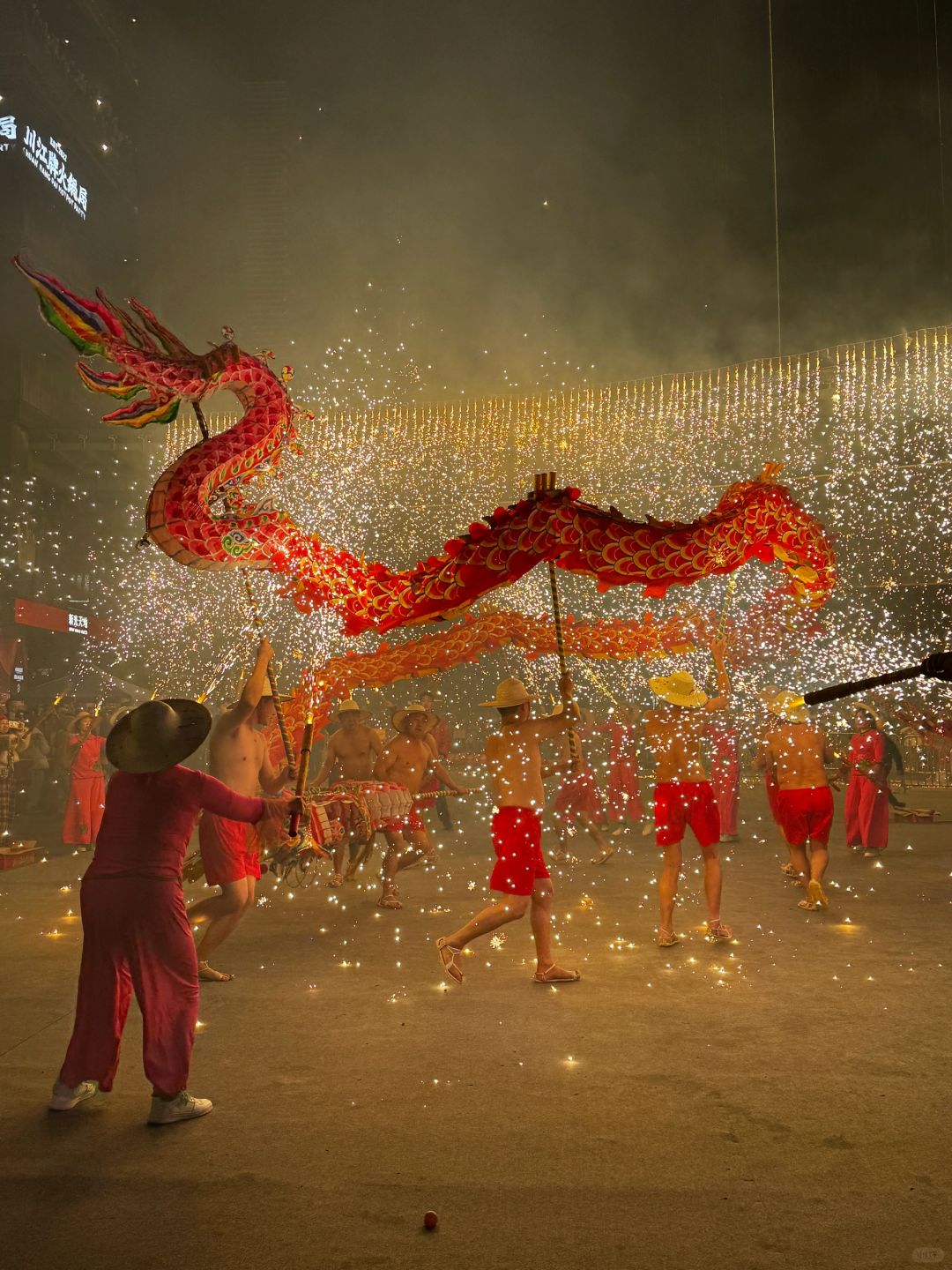 重庆真的是遥遥领先。。。。。。 昨晚和姐妹在新光天地逛街,偶遇了一场烟花火龙!舞