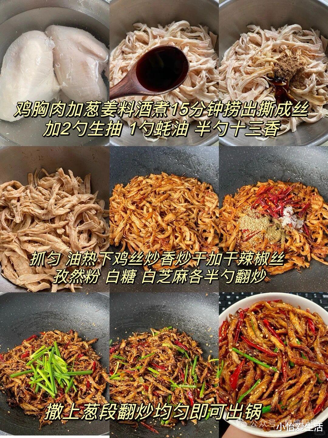这道菜的灵魂就是“手撕”和“拌汁”!鸡胸肉冷水下锅,加姜片、料酒煮15分钟,关火焖5分钟,这样肉嫩到离谱。捞出来过凉水,顺着纹理撕成细丝,这一步千万别用刀切,手撕的鸡丝更入味。调汁是关键:一勺生抽、半勺老抽、一勺香醋、两勺辣椒油、一勺花椒油,再加蒜末、葱花、白芝麻,淋在鸡丝上拌匀,香得隔壁小孩都来敲门!技巧就是煮鸡胸肉时别煮太久,焖熟的肉才不柴,拌汁可以多放辣椒油,麻辣味儿直接拉满。