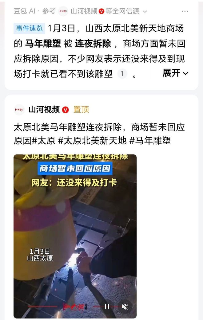 谁能想到,一匹 1.8 米高的粉色不锈钢马,能让太原商场在 3 天内经历从 “新春惊喜” 到 “连夜拆雕” 的大反转?