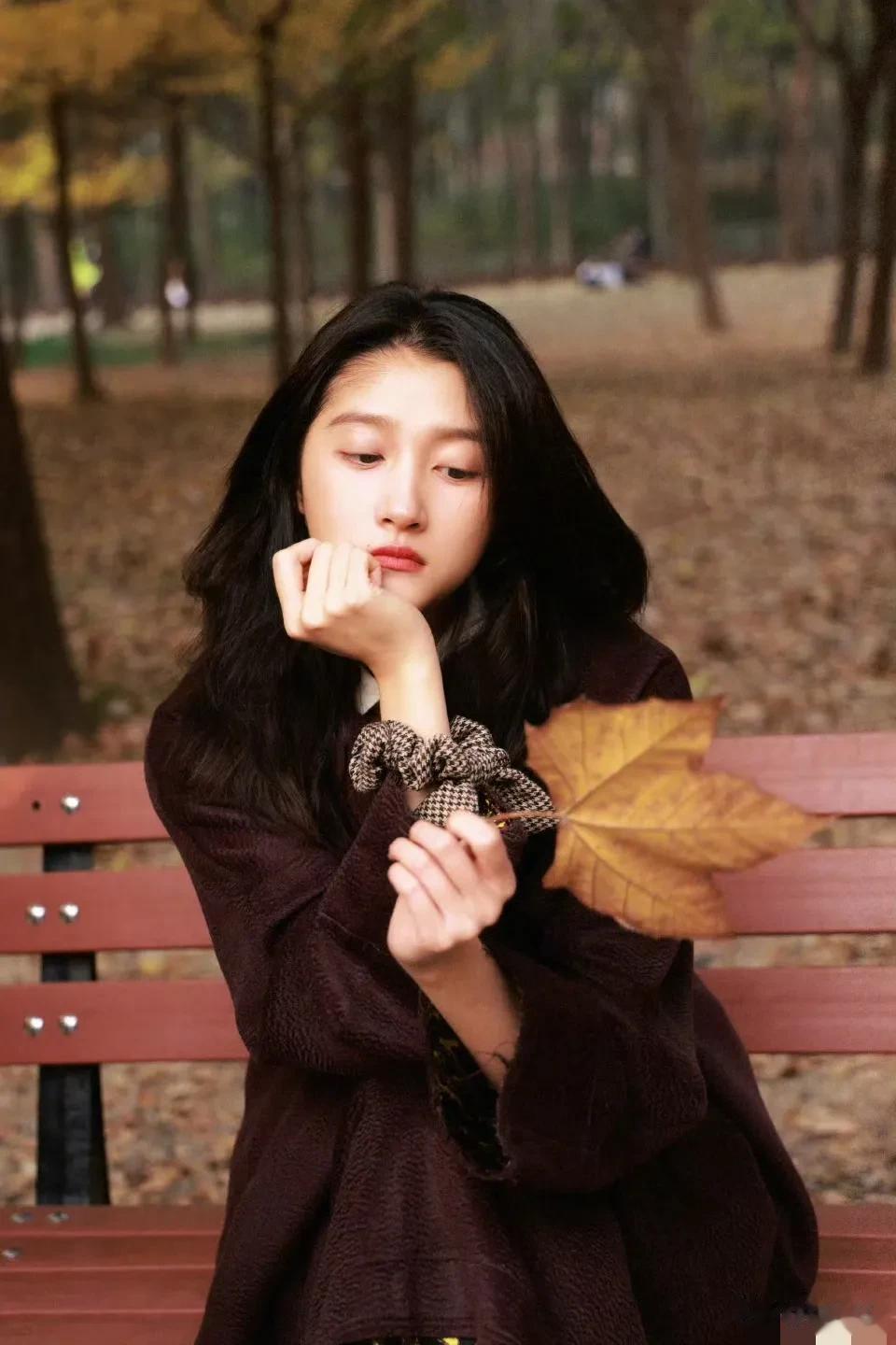 近期,关晓彤在社交平台上晒出一组秋冬枫叶照,并发文:低头捡个秋。