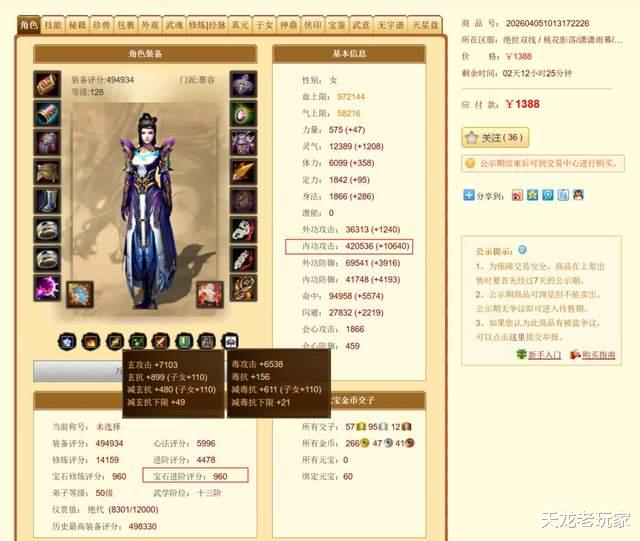 内功攻击居然有这么高!还是玄毒双修!