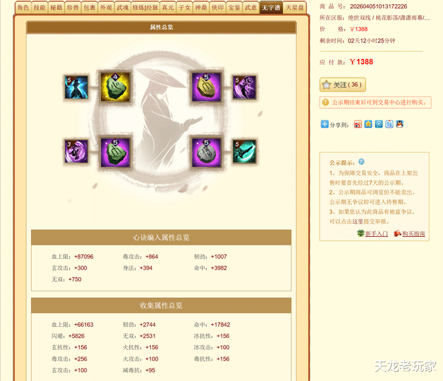 铁子们!今天在格子上发现了一个很有亮点的号——来自【桃花影落】服务器的玄毒内三修的慕容: