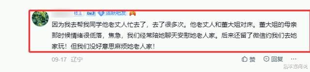 据悉,当时这位网友前往医院照顾其同学的老丈人,发现董大姐就在其边上,那时候董大姐的母亲情绪不稳定,焦急,所以便与这位网友聊了起来,而对方也不断安慰董大姐的母亲,后来才得知,董大姐就是董立范。