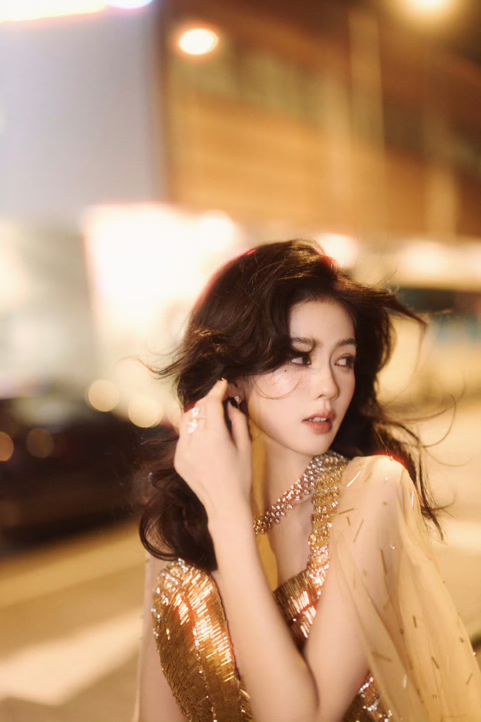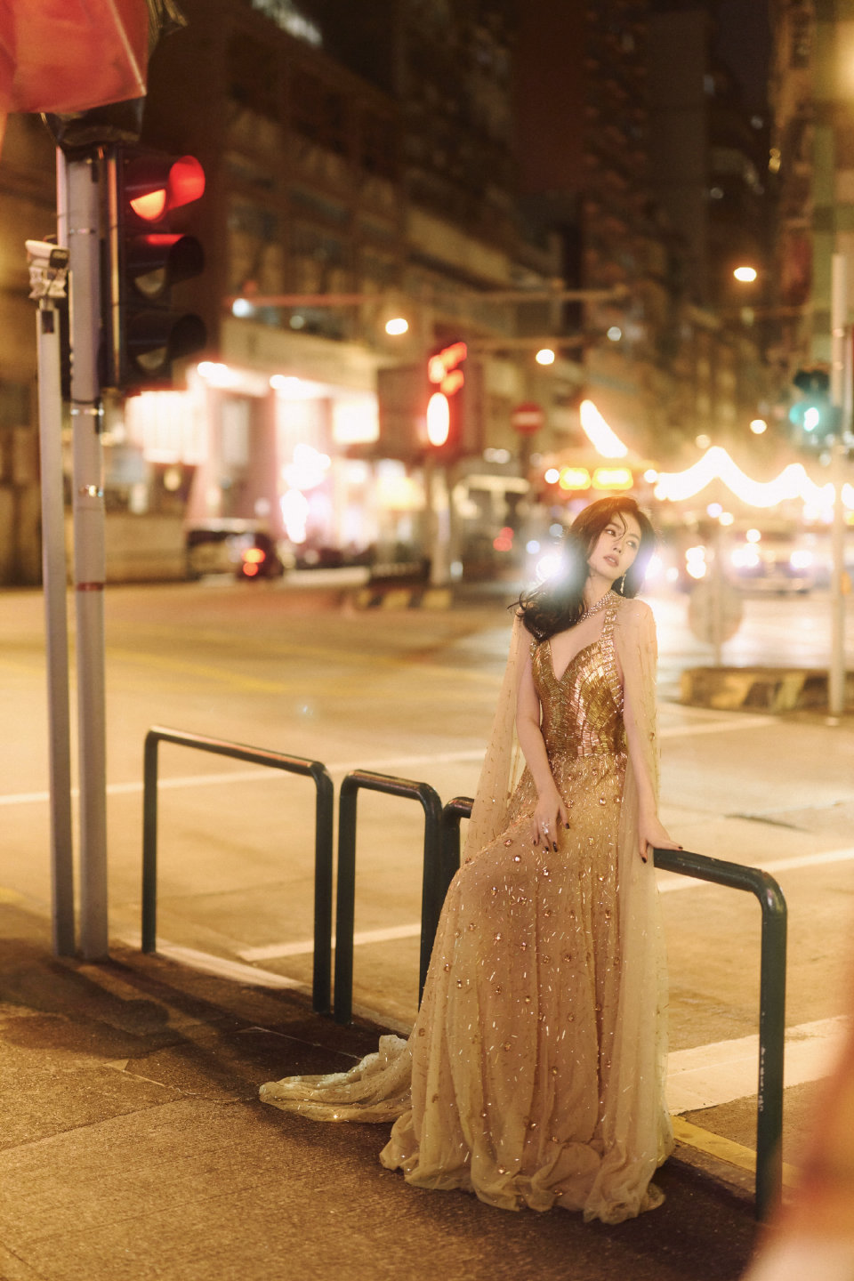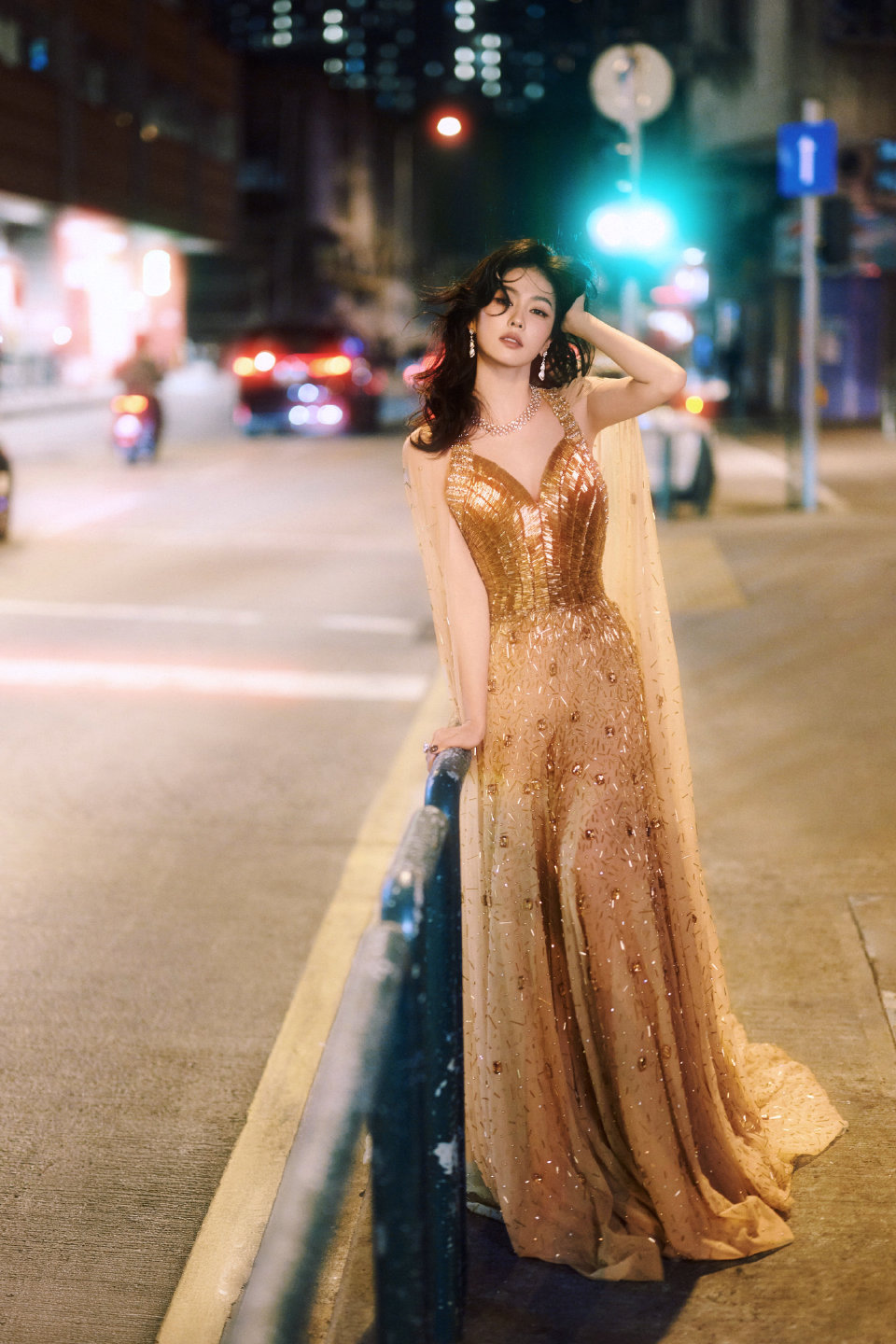白鹿鎏金抹胸礼裙,女王就是金色的