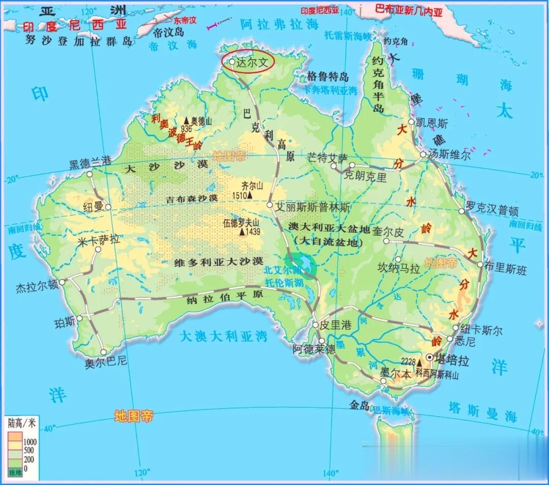 达尔文城区在一个半岛上,市中心纬度是南纬12°26′17″。