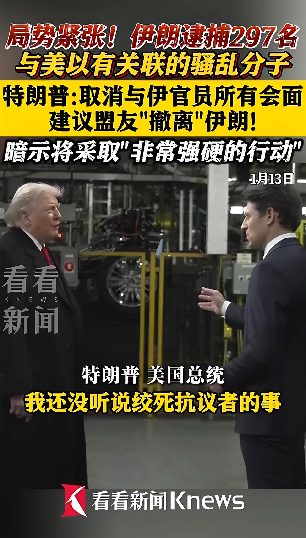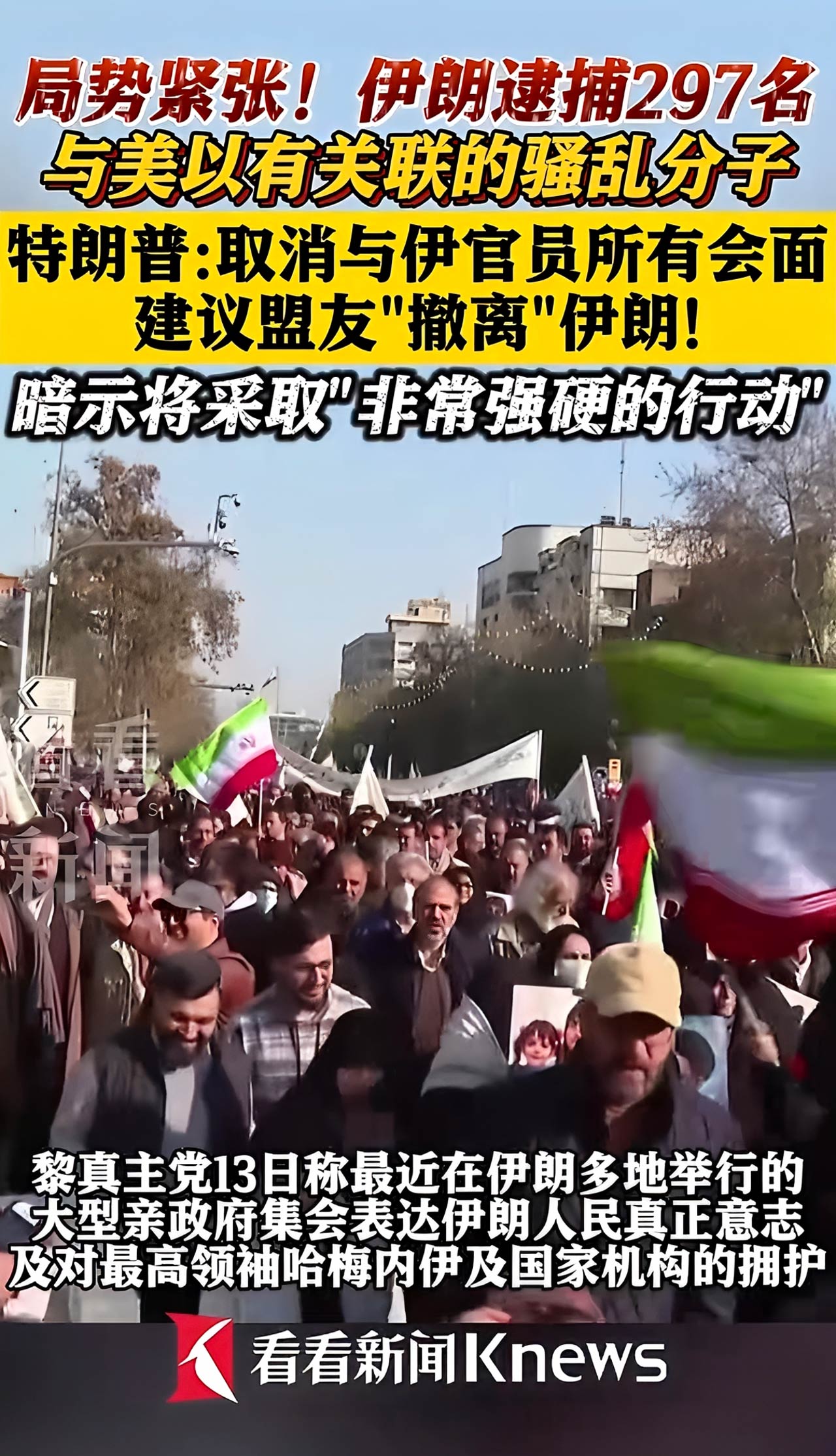 1月13日,伊朗警察部队宣布逮捕297名“骚乱分子”,指控他们与以色列及美国关联的“暴乱组织”有联系。同日,伊朗伊斯兰革命卫队在东南部锡斯坦-俾路支斯坦省破获多支“恐怖组织”小组,称嫌疑人受以色列指挥,从东部边境潜入,并在扎黑丹市活动。
