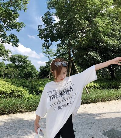 短袖放下来的时骑士裤扮演的是打底裤,把短袖的一个衣角塞进裤腰里,可以很好的拉长身材比例显腿长,但这种穿法比较挑身材,腿型偏细一点的女孩子可以这么搭配,可以让你尽显大长腿。