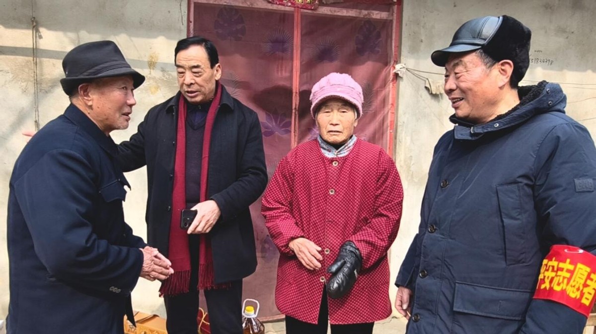 春节将至,岁寒情深。2月10日下午,江苏邳州市爱心商家、徐州优秀平安志愿者、邳州龙凤祥金店负责人刘富鑫,专程来到戴圩街道办事处前进村,看望慰问80岁高龄的伤残退伍老兵、老党员张万富。这位曾为新中国建立贡献青春的老军人,在冬日里收到了一份沉甸甸的新春祝福。