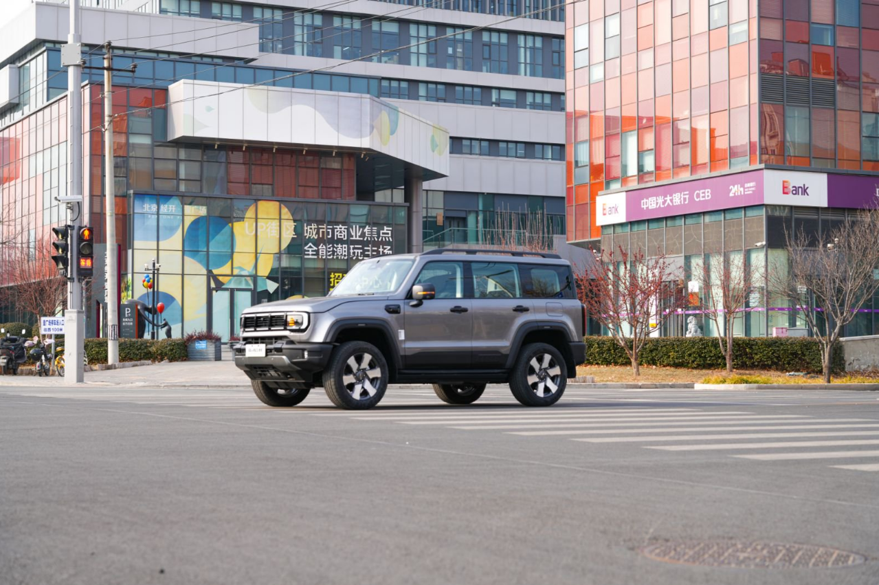 城市道路复杂多变,视野开阔是安全的第一步。BJ40增程元境智行版采用了独特的四轮四角设计,搭配接近1:1的宽高比,打造出1964mm的车高。这样的设计让驾驶者拥有“高瞻远瞩”的坐姿,前方和侧方的视野范围远超普通车型。无论是面对拥堵路段的车流,还是突然窜出的行人或非机动车,这种开阔的视野都能让驾驶者提前预判,减少因视线盲区导致的安全隐患。相比之下,同为硬派风格的猛龙PHEV,虽然也有方正的造型,但1843mm的车身高度在视野开阔性上稍显逊色。