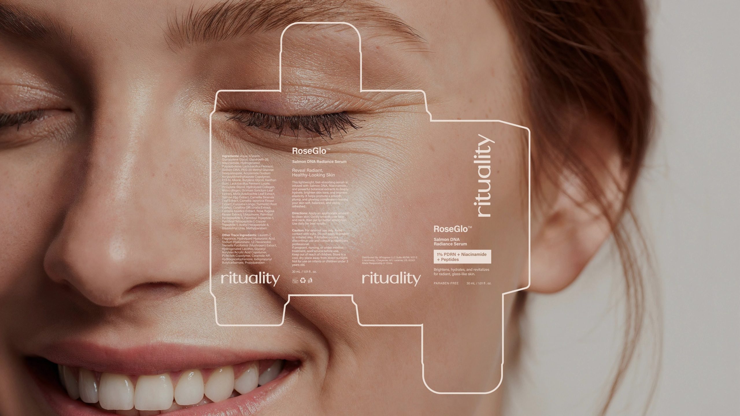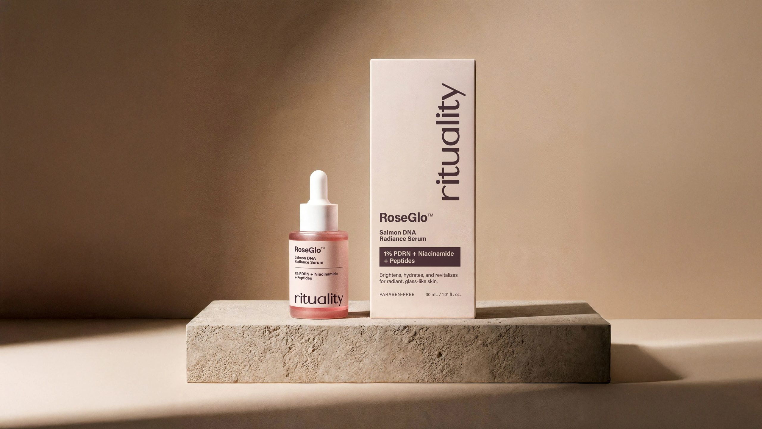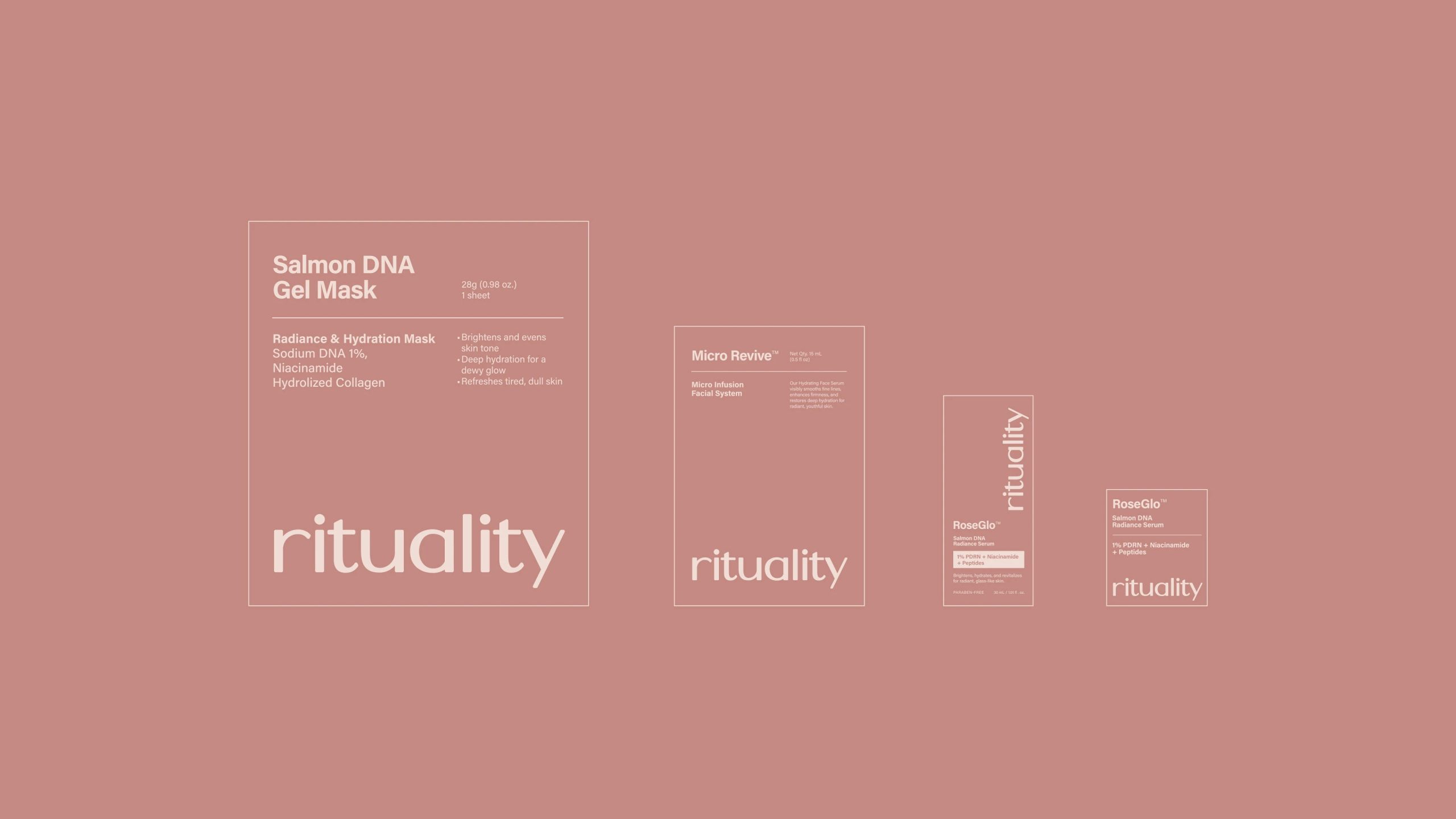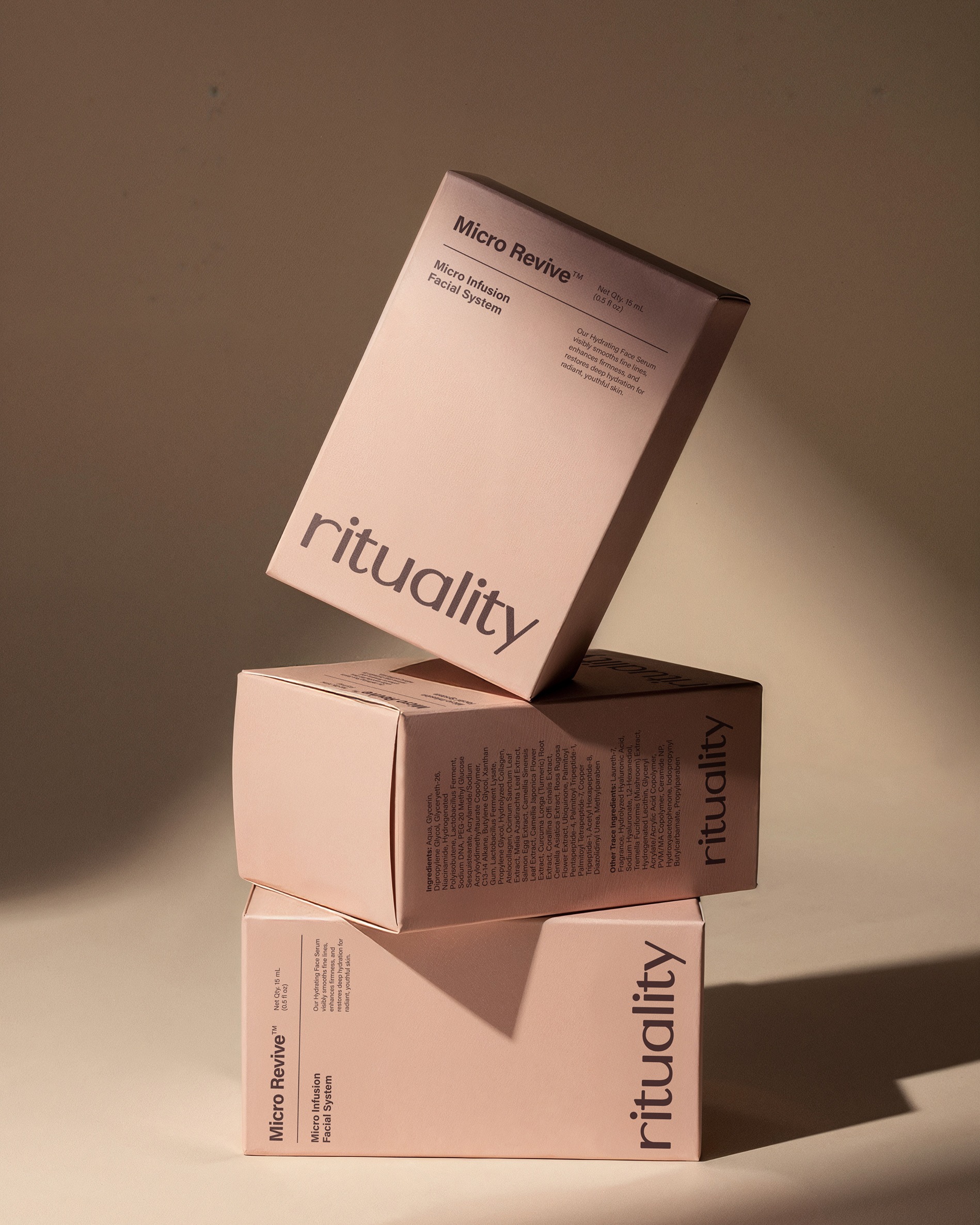 Rituality的包装设计以其简约而精致的风格令人印象深刻。主要采用柔和的粉色调,营造出一种温暖、宁静的氛围。包装上的文字排版简洁大方,品牌名称“rituality”以优雅的字体呈现,增强了品牌的辨识度。整体设计注重细节,每一个元素都经过精心布局,既体现了其高端定位,又不失现代感。这种设计不仅吸引了追求品质生活的消费者,还在众多护肤品中脱颖而出,成为视觉上的焦点。