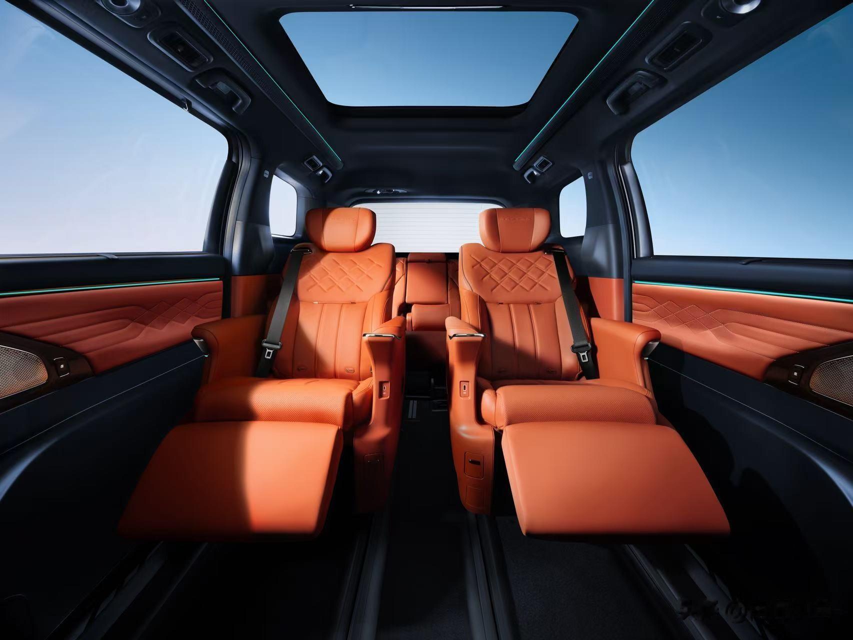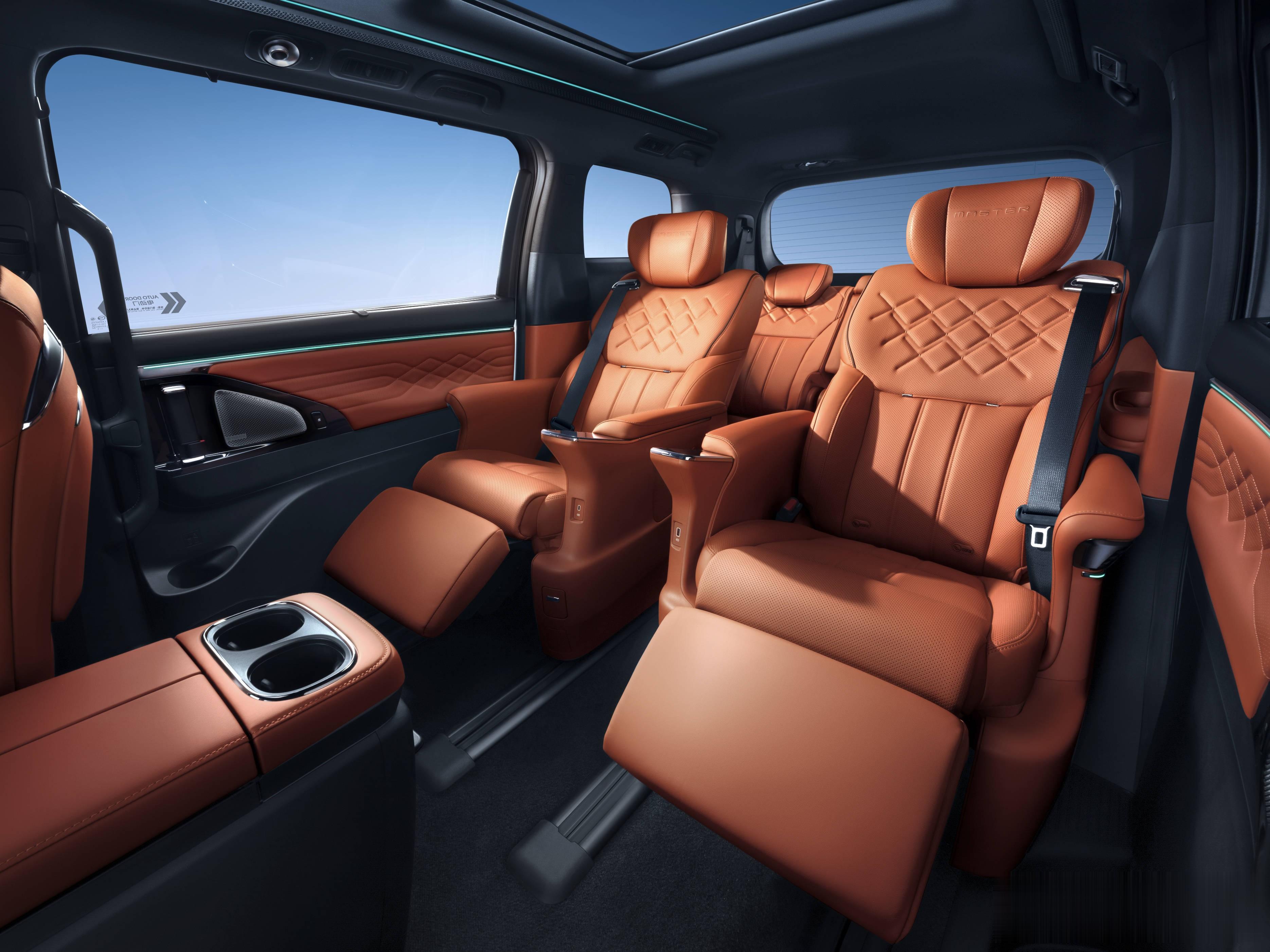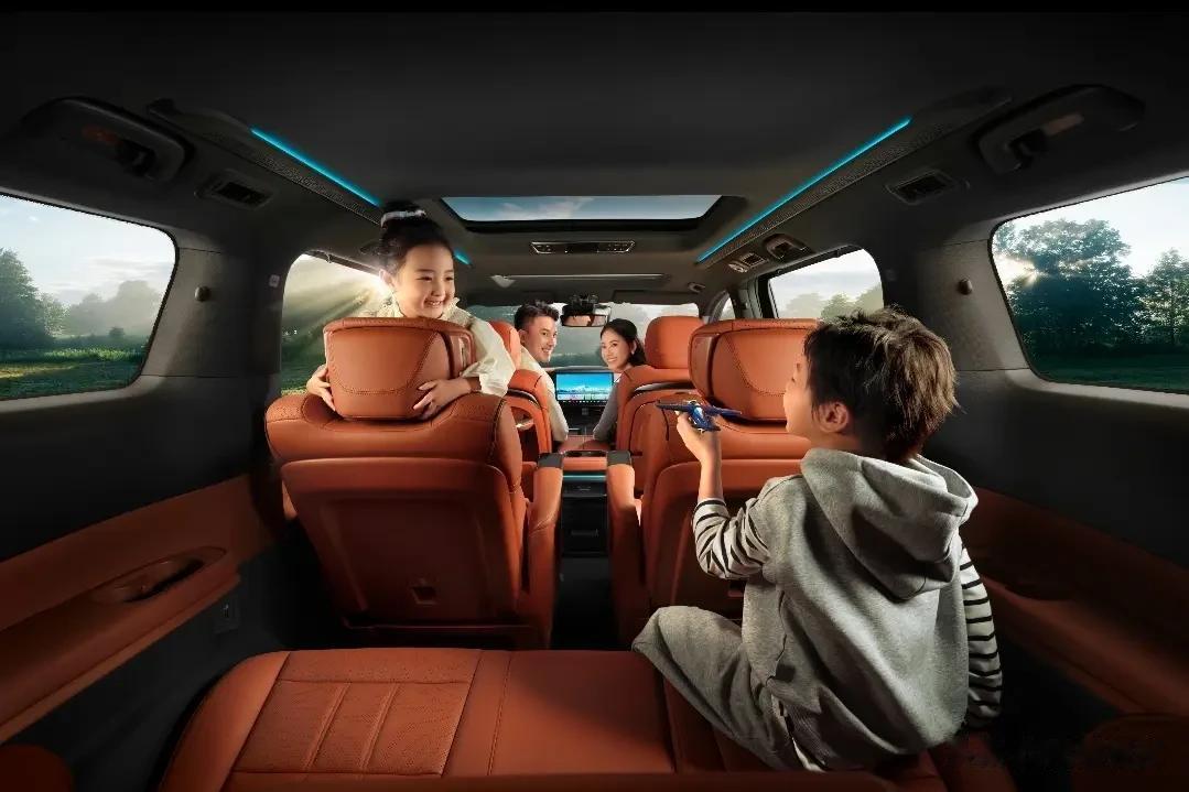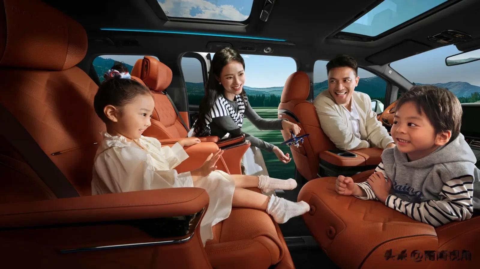 进入车内,“移动头等舱”的体验扑面而来。全车采用Nappa真皮座椅,触感柔软细腻,且前排、二排均配备加热、通风、按摩功能,二排还支持180°旋转,长途出行时无论是老人放松休憩,还是孩子自由活动,都能找到舒适姿态。更值得一提的是,车内空间经过科学规划,即使满员乘坐,三排乘客也能拥有充裕的头部和腿部空间,再加上三区独立空调、静音座舱技术,彻底告别拥挤与嘈杂,让每一次出行都成为享受。