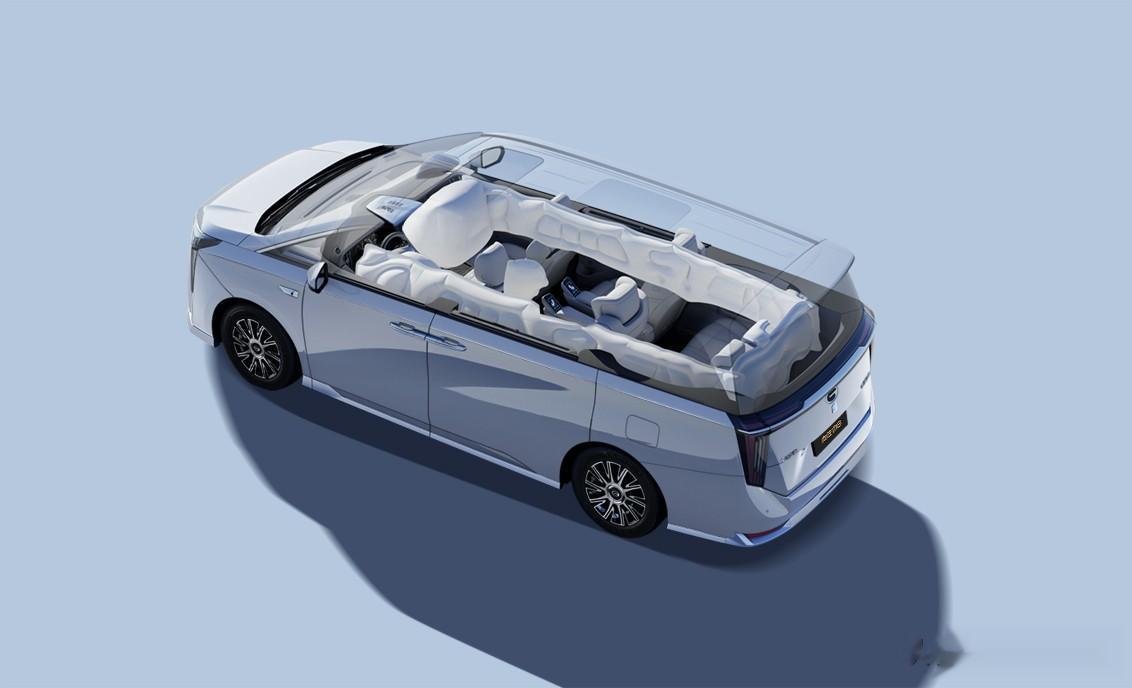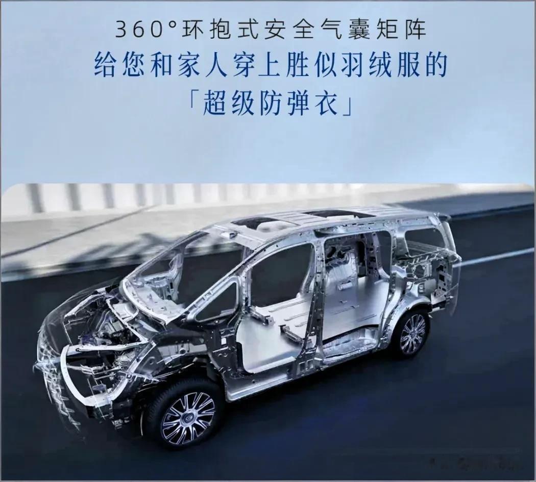 3. 全域安全防护,守护全家安心对于家庭用户来说,安全永远是底线,传祺向往M8宗师在这方面做到了“无死角防护”。车身采用高强度钢占比超70%的“笼式”安全结构,就像给家人穿上一层“钢筋铁骨”,能有效抵御碰撞冲击。同时,全车标配7安全气囊,包括主副驾气囊、侧气囊、侧气帘及膝部气囊,全方位覆盖驾乘人员。