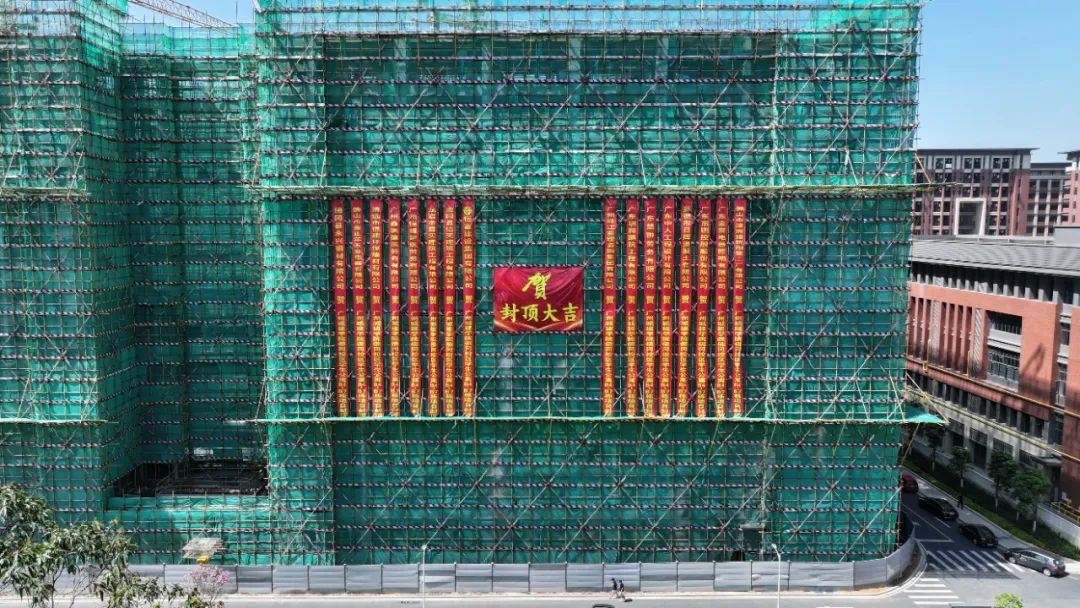 近日,广东行政职业学院校花都校区D栋学生宿舍正式完成主体结构封顶!