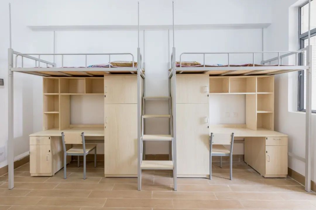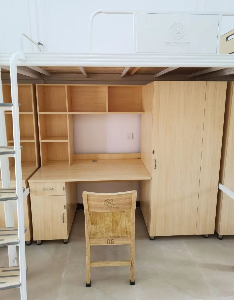 2022年,广州幼儿师范高等专科学校启用科教城校区。新宿舍上床下桌,明亮整洁。桌子也提供了多层储物空间供同学们使用。椅子也是细节满满!