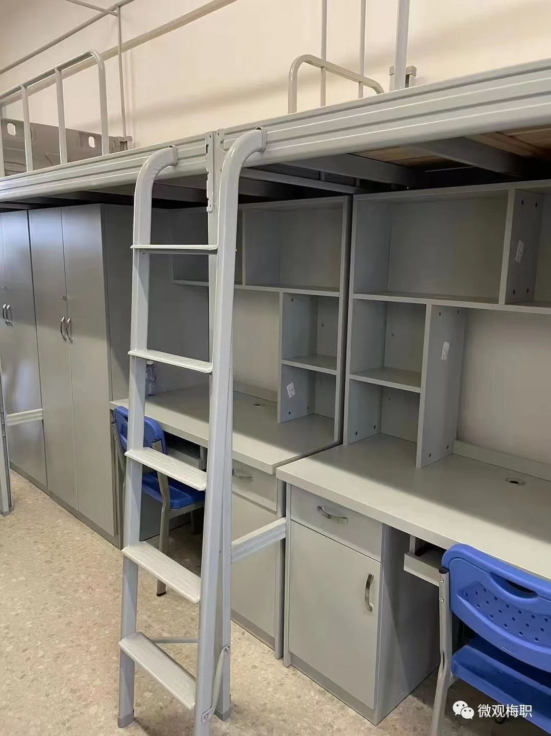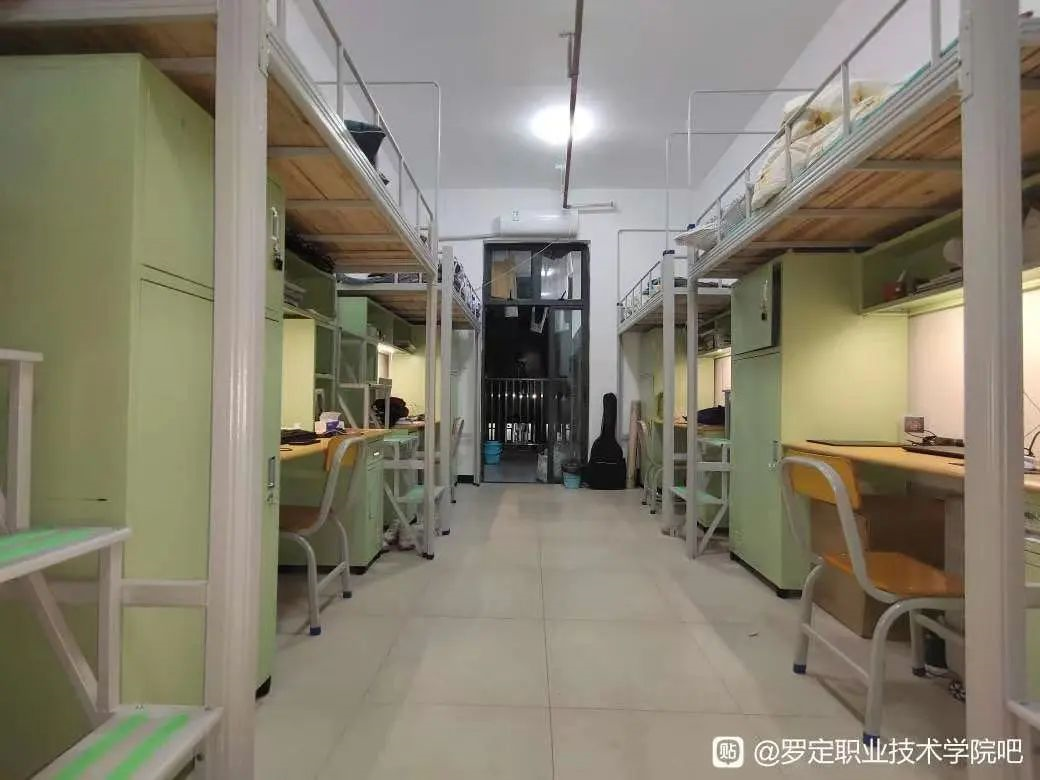 据了解,罗职院新的西校区在2023年也开始启用了。宿舍上床下桌,主色调为淡绿色。每个位置都拥有单独的衣柜,书桌储物空间也足够。