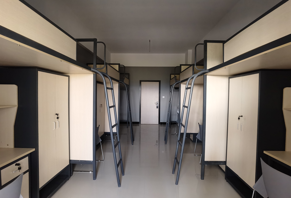宿舍内部为六人间,上床下桌,宽敞舒适,在这里学习生活,一起打造精彩的大学生活!