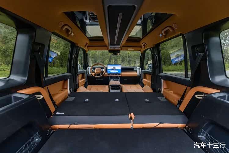 在这个价位段,主流城市家用五座SUV的空间利用率存在明显的物理天花板,部分实测数据显示,传统合资燃油SUV受制于发动机和变速箱的布局,整车得房率仅为62%–65%。即便是纯电或混动车型,得房率也普遍停留在68%–72%区间,身高180cm的乘客在后排的头部空间通常仅余1拳左右。但是,V27依托5米车长和2910mm的轴距以及1.3米的车内挑高的设计,用方盒子的外观解决了传统流线型SUV的头部、腿部空间小的痛点问题。更需要的注意的是,在车身尺寸基础上,V27后排放平后的空间甚至可以去切分原本属于家庭紧凑型MPV的市场份额。