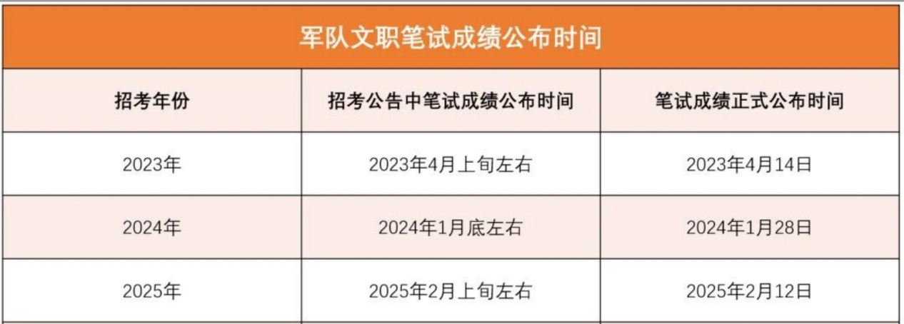 往年官方公布军队文职笔试成绩时间数据