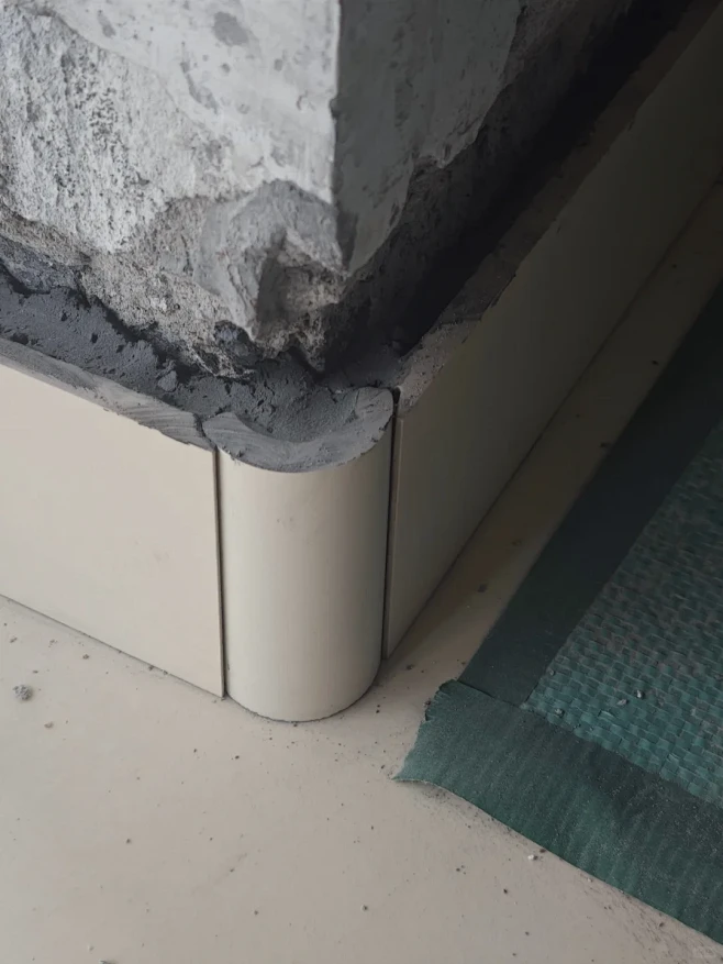 瓷砖阳角:摒弃塑料收边条,采用海棠角(45度倒角)拼接,后期用美缝剂填充。效果浑然一体,是追求极简和品质的首选。