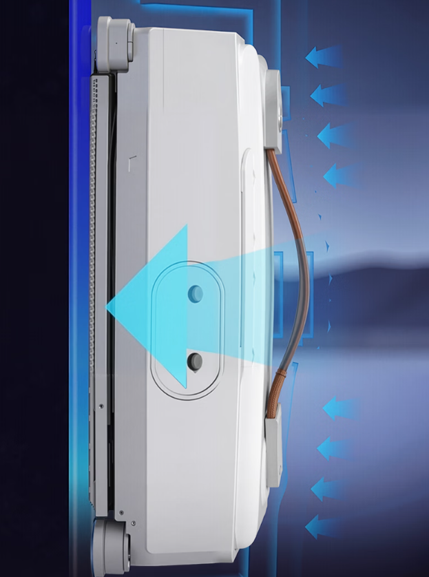 MUBE是一款专为入门级用户打造的机型,精准解决了入门款擦窗机器人吸力不稳、模式单一、适配场景有限三大痛点。机身搭载2800Pa-6000Pa变频吸力系统,吸力不仅能灵活调节,还能实现自动补偿吸附压力,始终保持恒定的贴合力度,彻底解决了吸力不稳的问题,高层使用也不打滑。清洁端采用创新的四向喷水设计,让水雾喷洒更均匀、更细腻,能全方位覆盖玻璃表面,充分溶解鸟屎、水垢等顽固污渍。内置智慧芯片支持一键托管式擦窗,搭配4种清洁模式,可灵活适配不同尺寸、不同脏污程度的玻璃。机身配备4个高精度探边传感器,插电式供电让续航更稳定,仅对开窗角度小、弧度过大的窗户适配性有限,窄窗框清洁稍显吃力。