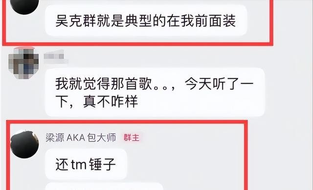 那个叫梁源的乐评人,不光是在节目上说,下了节目还在网上骂,据说还在自己的粉丝群里说脏话骂吴克群,说他装样子。
