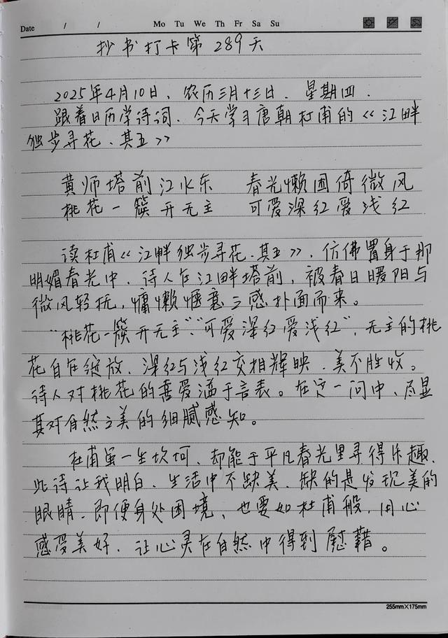 跟着日历学古诗词。祝福你在2025,每一天都如诗如画。今天学习/唐/杜甫《江畔独步寻花·其五》:
