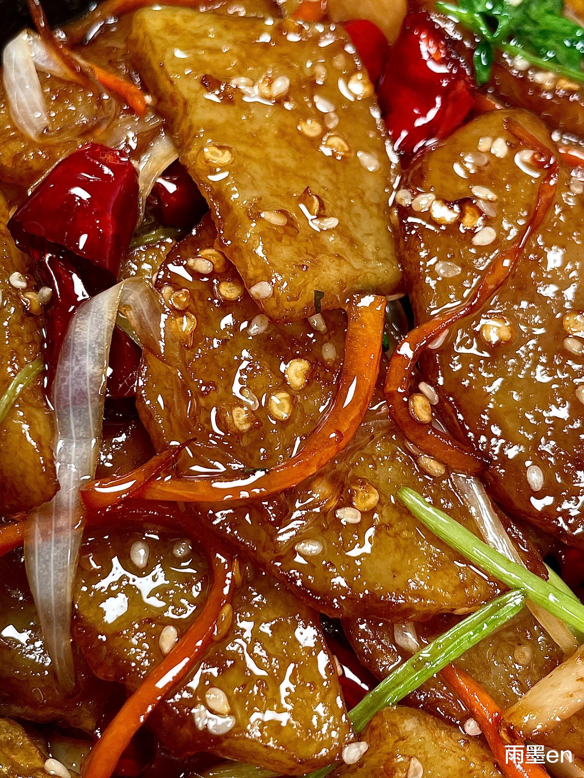 最后是“灵魂一步”:沿锅边淋一勺滚烫的热油,瞬间激发出调料的香味,撒上香菜段和白芝麻,翻炒两下立刻关火!这里要注意,陈醋一定要后放,而且别煮太久,不然酸味会挥发,就吃不到那种清爽的酸辣味了;白糖只放一点点,是为了提鲜,可不是做甜口哦~
