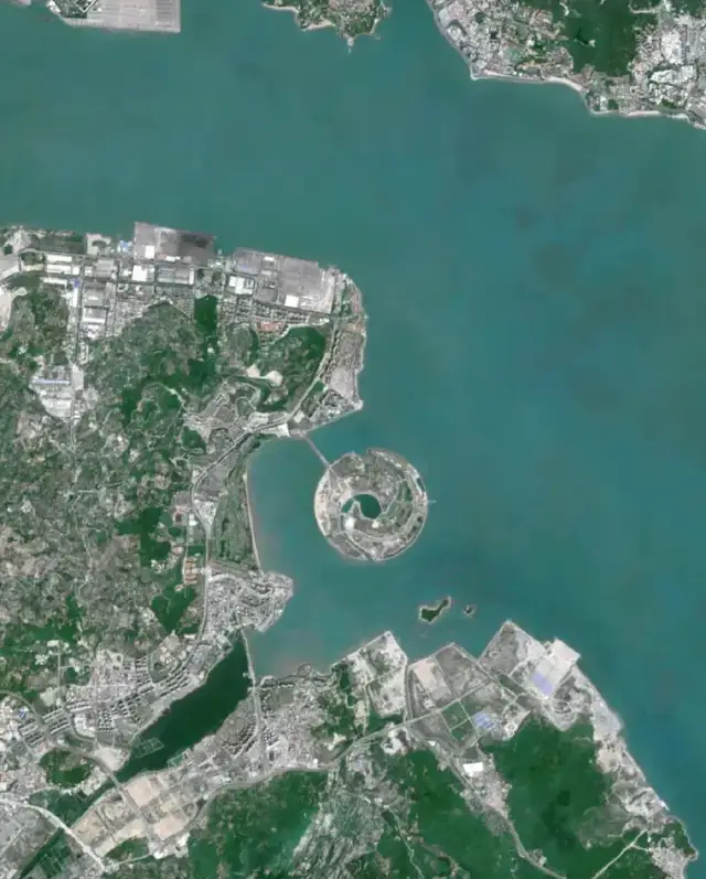 从空中俯瞰,该岛犹如两条“海豚”在厦门湾“嬉戏”,半径840米,规划总面积221.67公顷,其中填海形成陆域面积182.30公顷,形成岸线11.7公里。施工采用“双百”标准,能够抵御百年一遇的洪水和波浪侵袭。