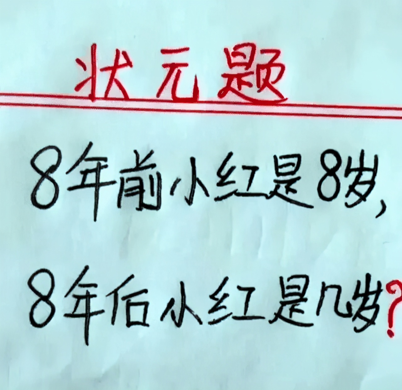 状元题:8年前小红是8岁,8年后小红是几岁?把你的答案留着评论区。