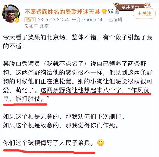 这起风波的起因源于一位观众观看演出后的随笔感想,其中提到了House在演出中使用讽刺意味浓厚的不恰当比喻,疑似内涵我们的人民子弟兵,当下文旅部门已经介入此事,北京市文化执法总队也相当重视此次事件,已经对其进行立案调查。