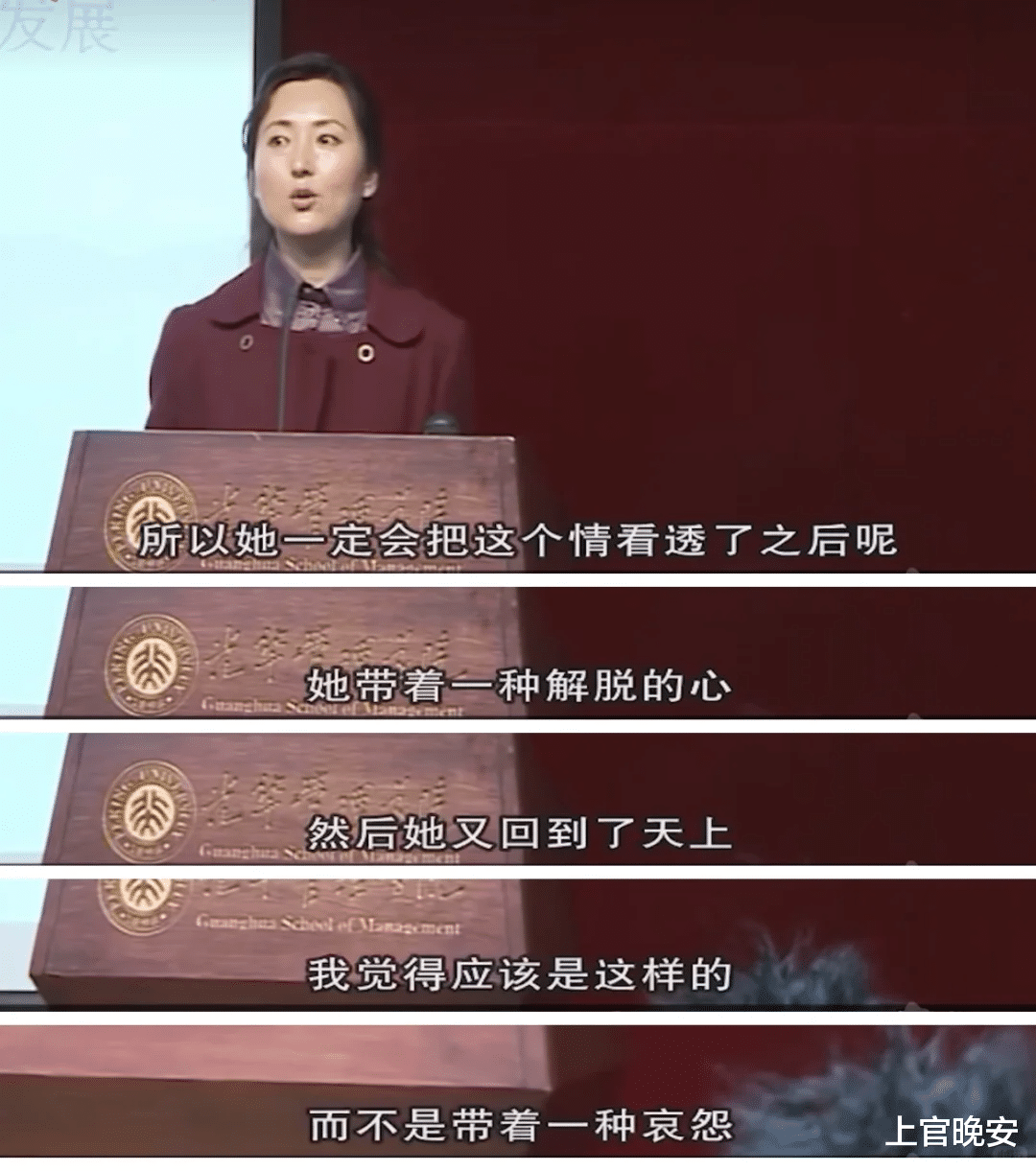 2006年陈晓旭在北大的演讲更是体现了这一点。她理解的林黛玉是很有灵性的女孩,黛玉的一生是用来还宝玉的灌溉之恩,如果由她来写后四十回,那她会写酬愿之后的林黛玉是带着看透一切、解脱的心态回到天上的,而不是像书中写的那样带着哀怨。