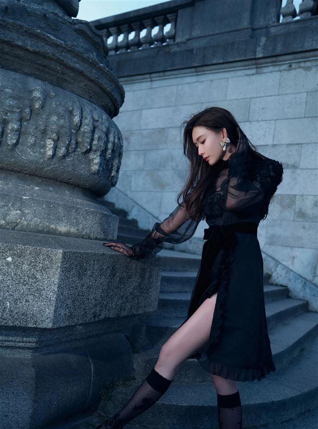 黑色蕾丝裙紧紧地贴合在她的身上,每一针每一线都仿佛诉说着精致与优雅。