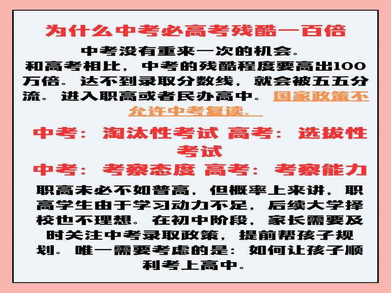 说到人生大考,你是不是立刻想到了千军万马过独木桥的高考?其实,还有一个更刺激的事件:那就是中考。如果说高考是场马拉松,那中考就像是一场百米冲刺后的“突然淘汰赛”,而且裁判在你冲过终点线时才告诉你:“对不起,你没机会了。”