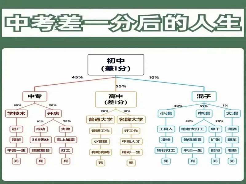 中考是懵懂年纪的“提前审判”。想想看,十四五岁是什么概念?正是青春叛逆期,大脑负责理性决策的部分还没完全发育好。很多男孩这时候还沉浸在游戏和打球中,突然就被推上了决定人生轨迹的考场。我邻居家小孩就是个典型的例子。初中三年光顾着研究怎么在《王者荣耀》里上分,中考成绩出来那天,他爸拿着成绩单的手都在抖。后来孩子自己说:“那时候真不懂啊,就觉得读书是给爸妈读的。”现在他在技校学汽修,虽然也踏实,但偶尔聊起来,眼神里总有点难以言表的遗憾。